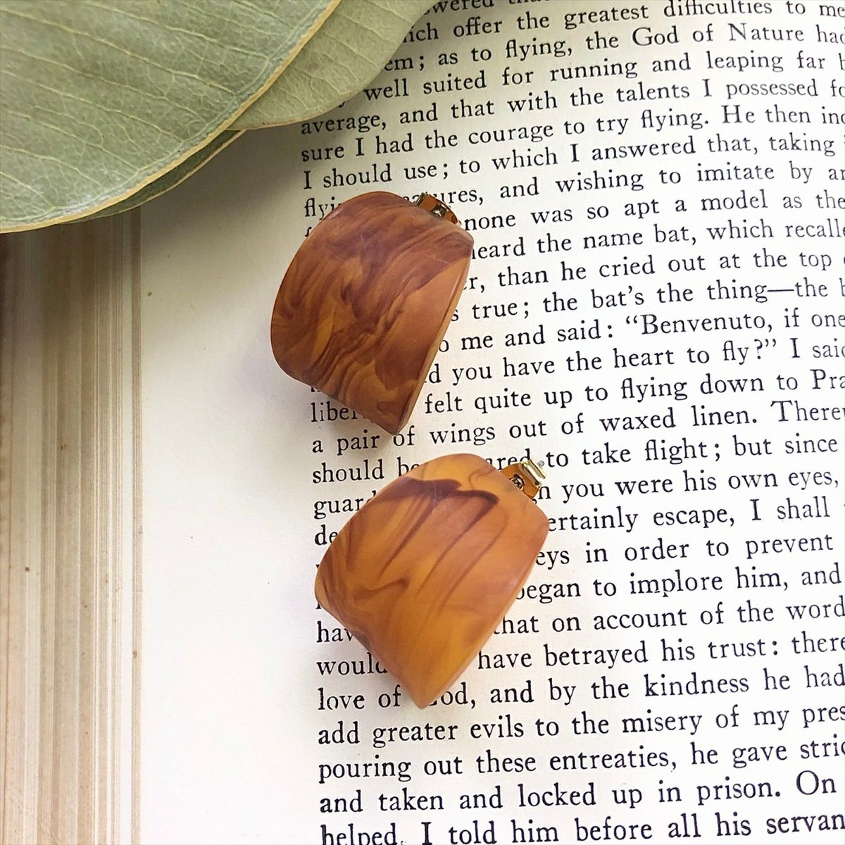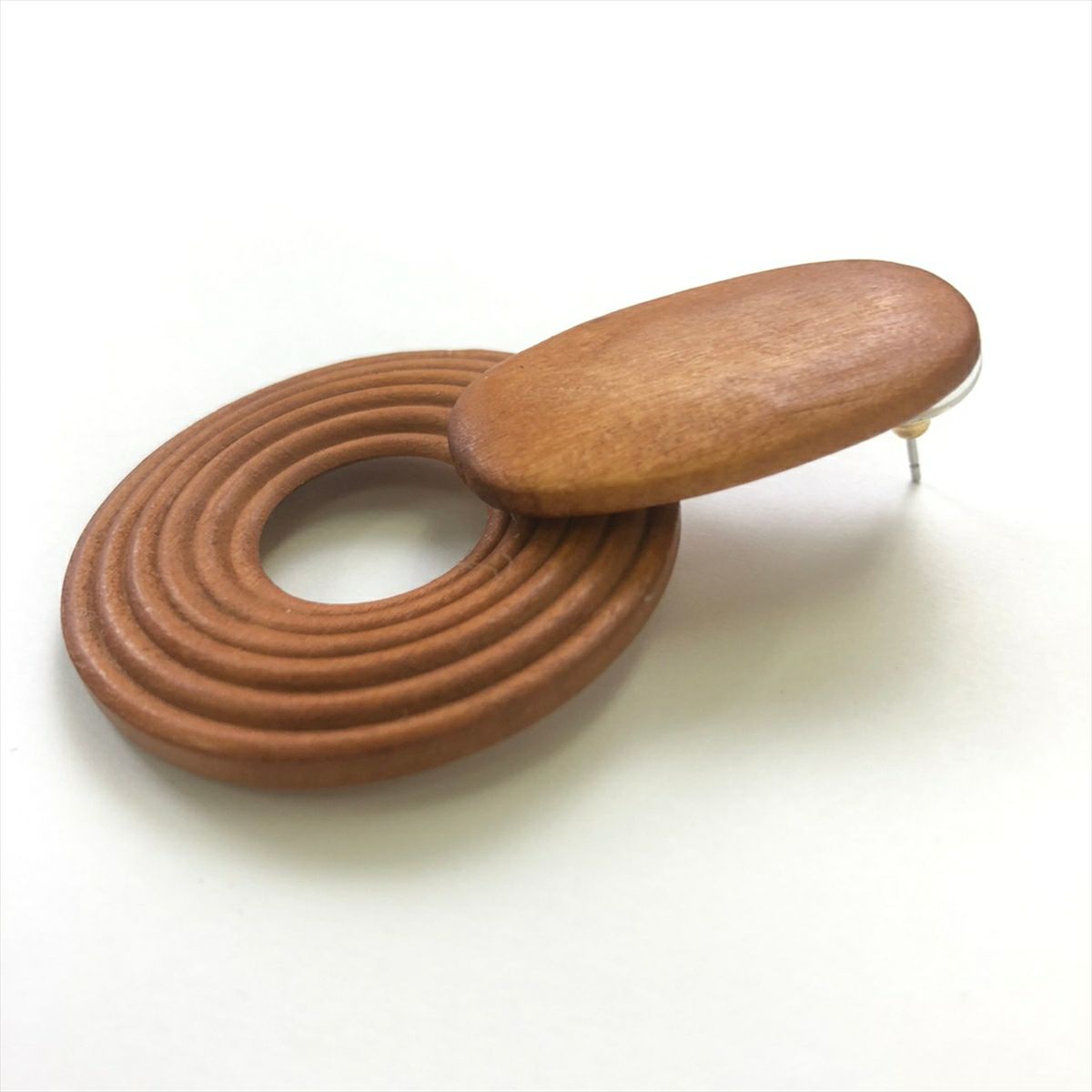 ウッド エスニック キャッチピアス オレンジブラウン