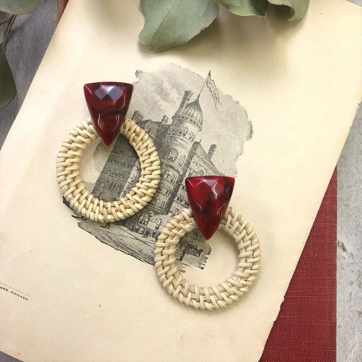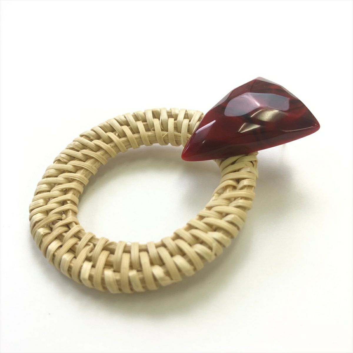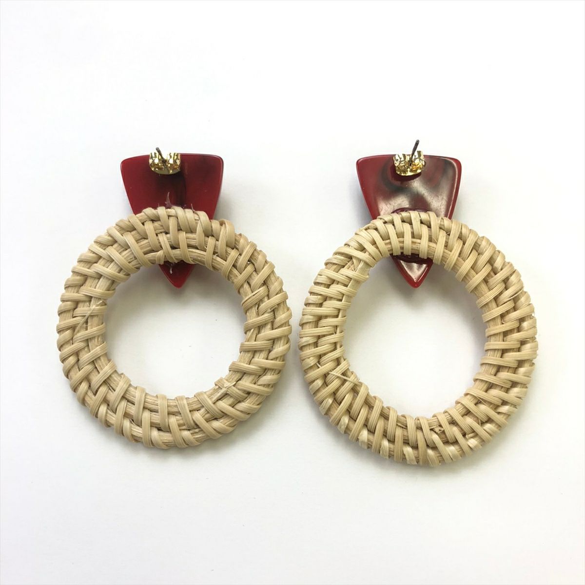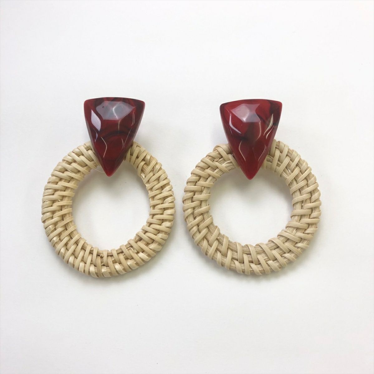 ラタン マーブル サークル キャッチピアス レッド