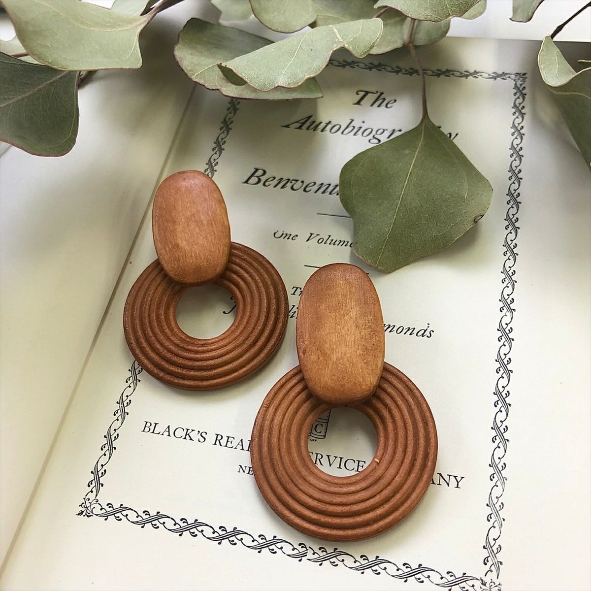 ウッド スクエア キャッチピアス 生成り
