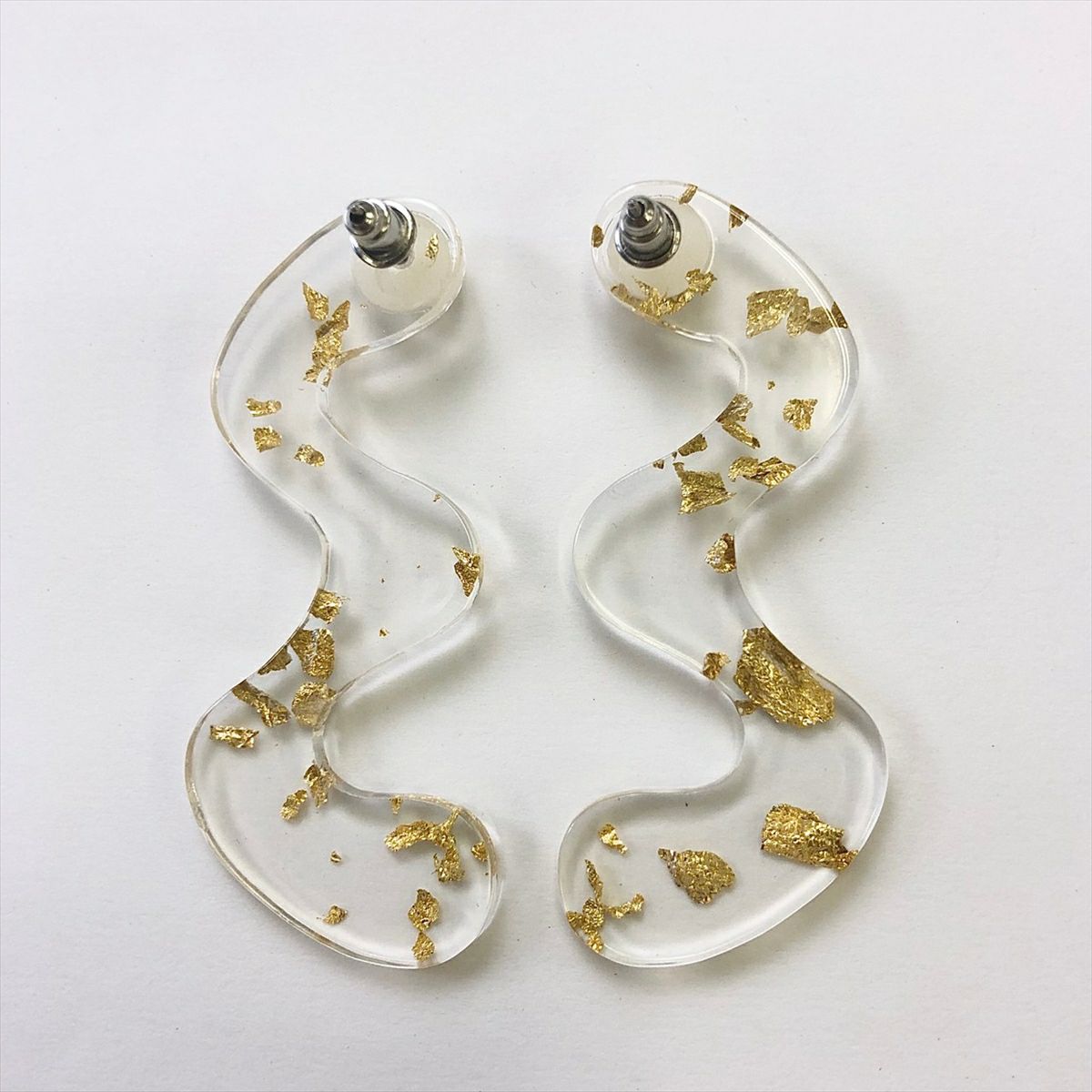 レジン パール クリア 金箔 キャッチピアス ゴールド