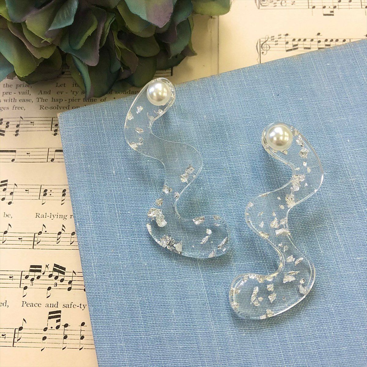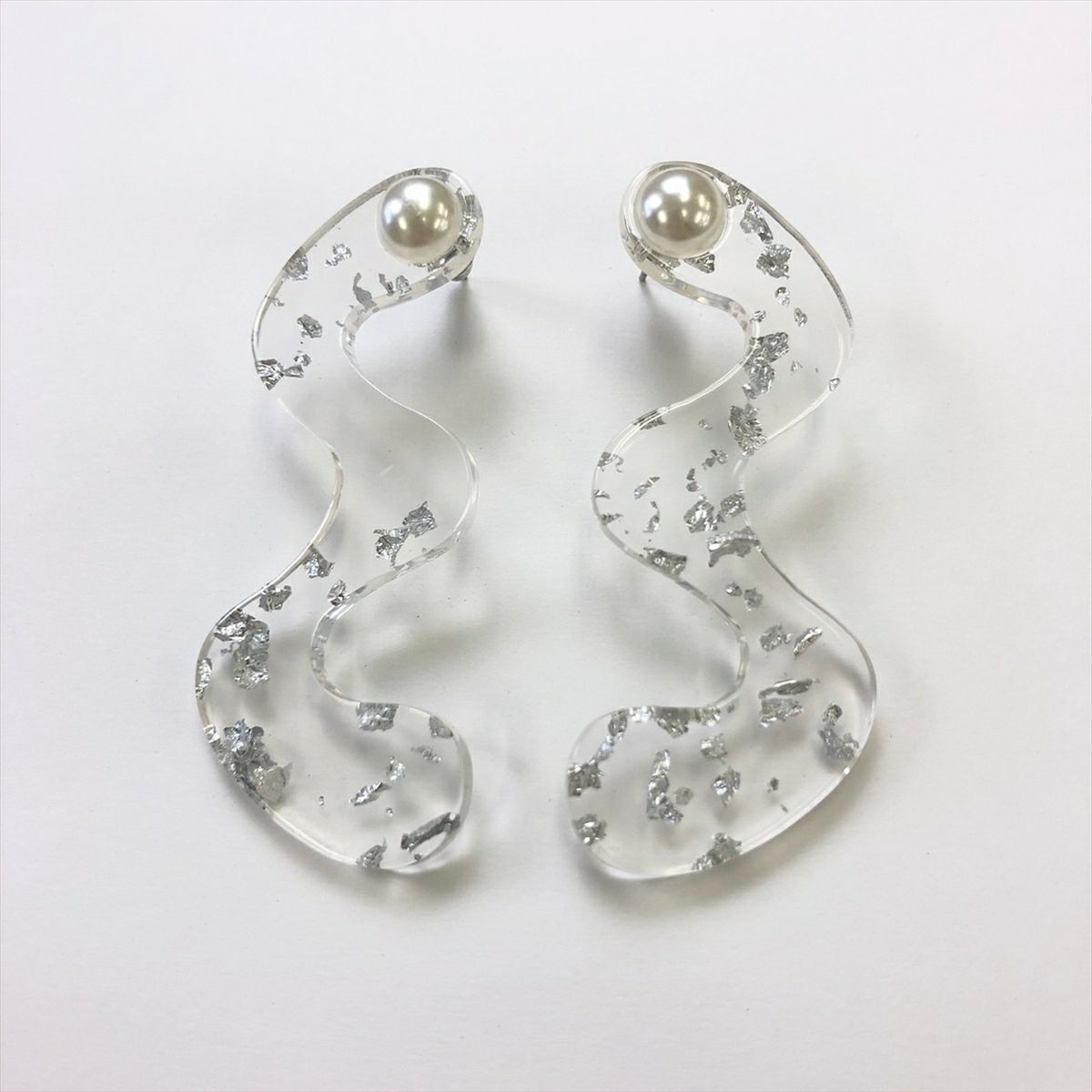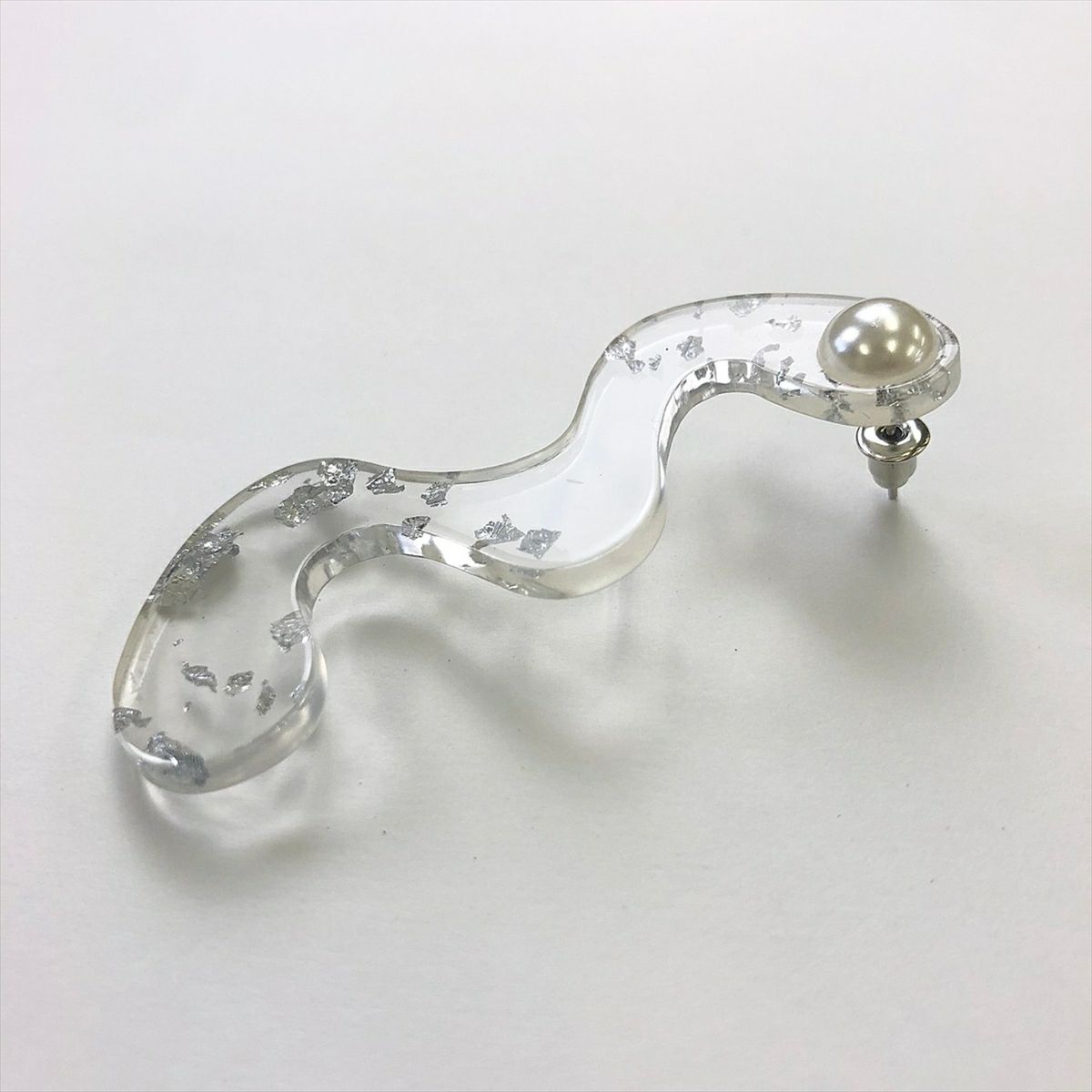 レジン パール クリア 銀箔 キャッチピアス シルバー