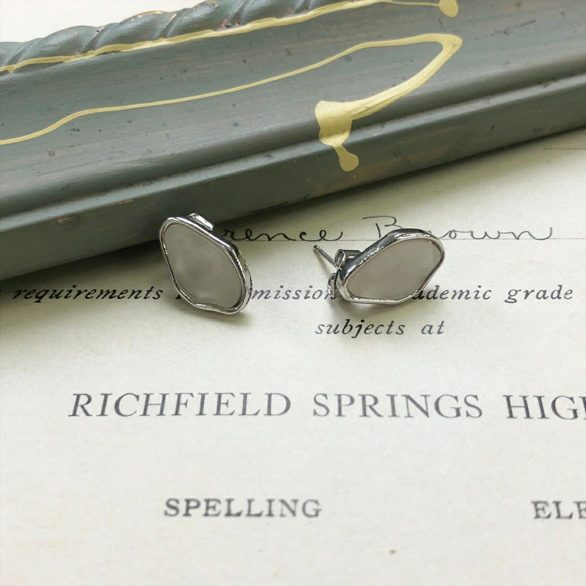 ウッド スクエア キャッチピアス ホワイト
