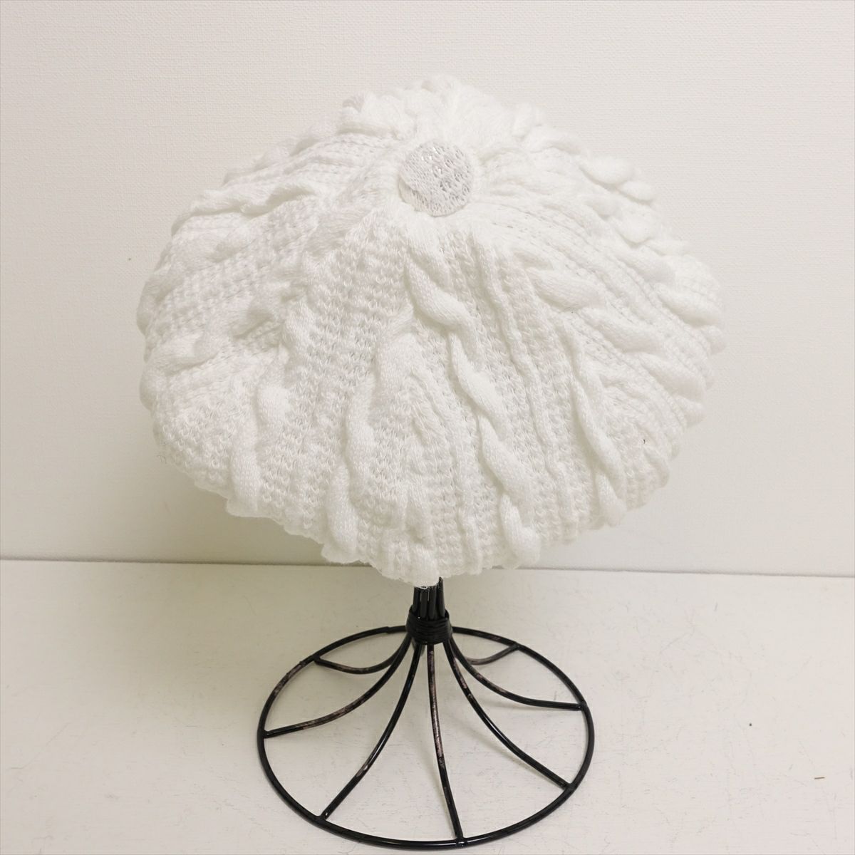 ケーブル編み キャスケット ホワイト