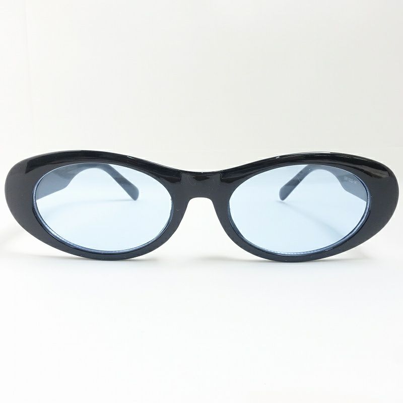 オーバル型 ブルーレンズ ブラックフレーム メガネ