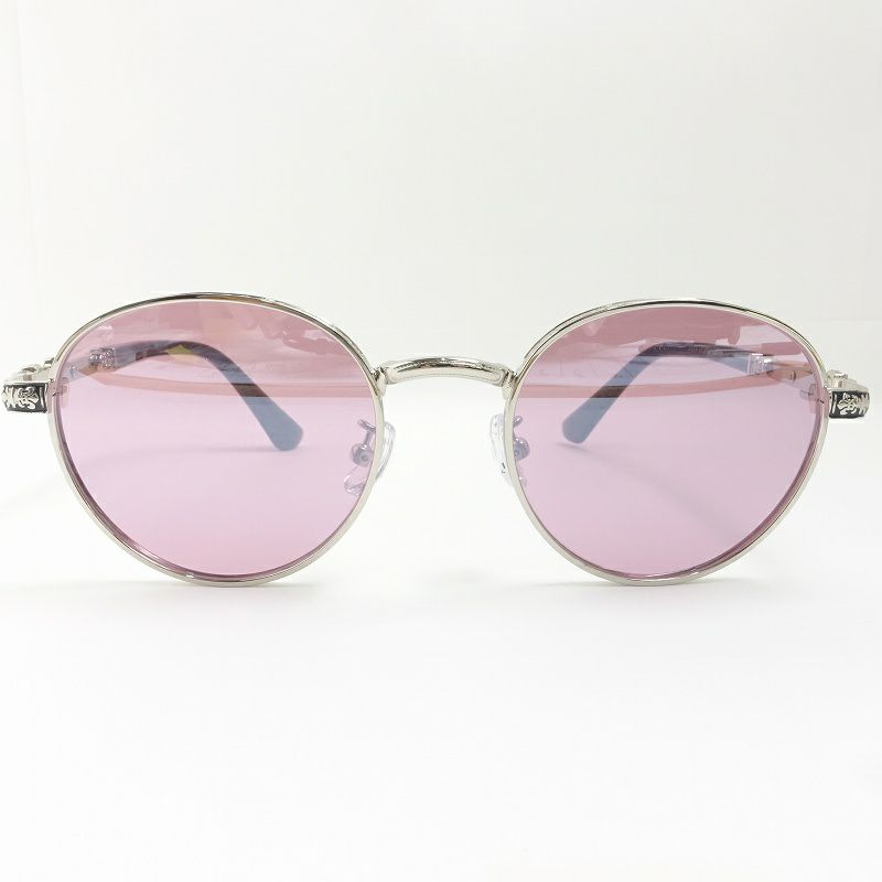 オーバル型 ピンクレンズ シルバーフレーム メガネ