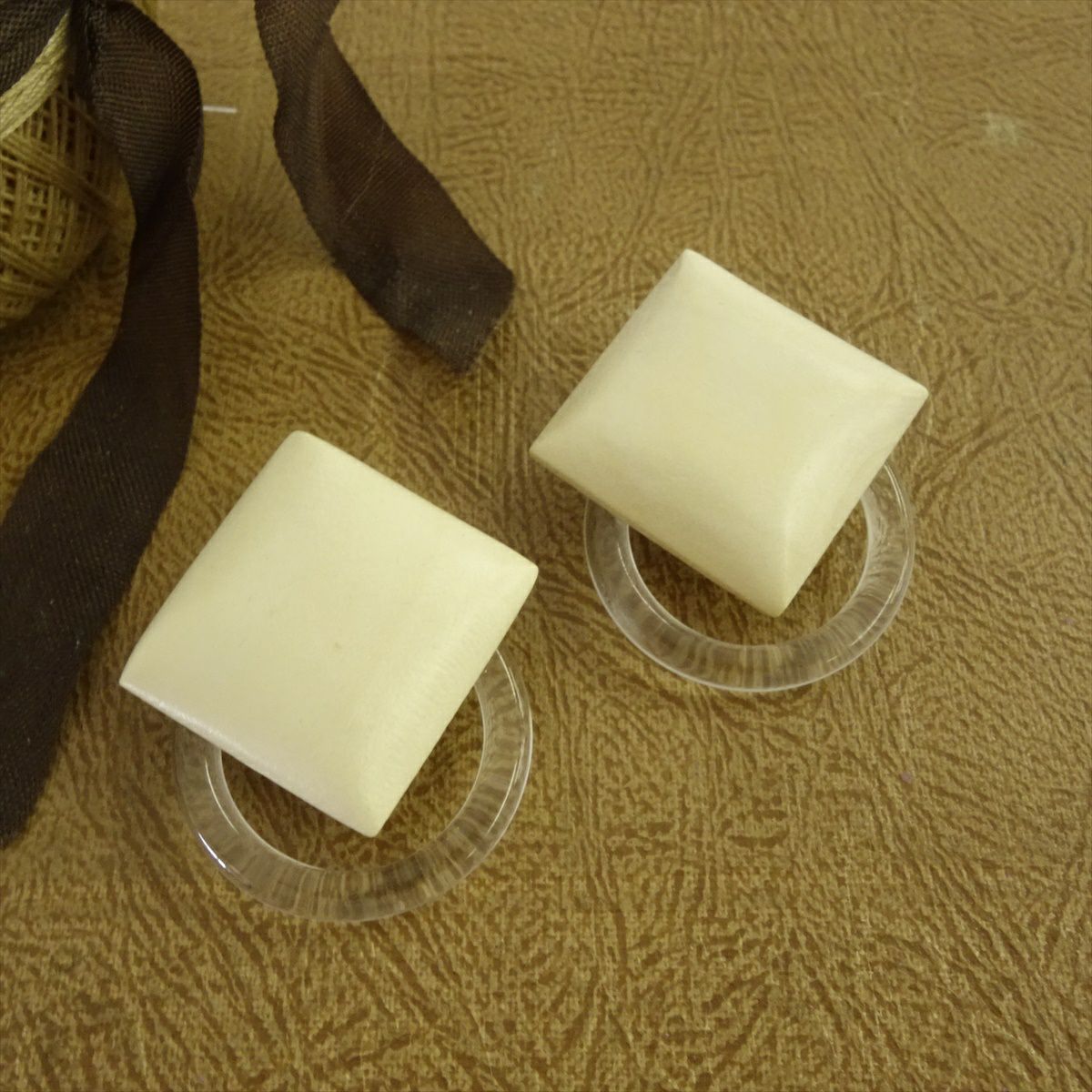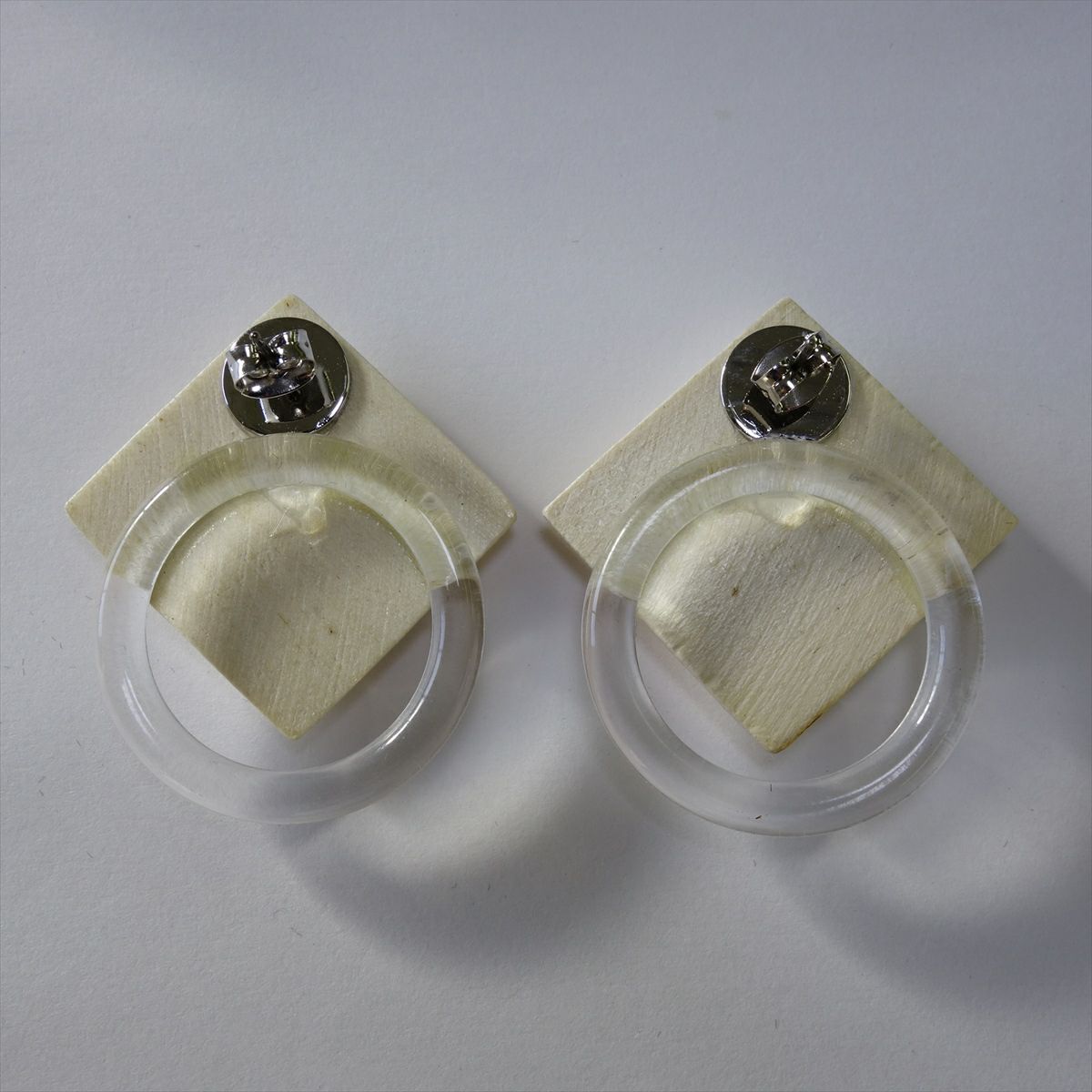 ウッド スクエア キャッチピアス ホワイト