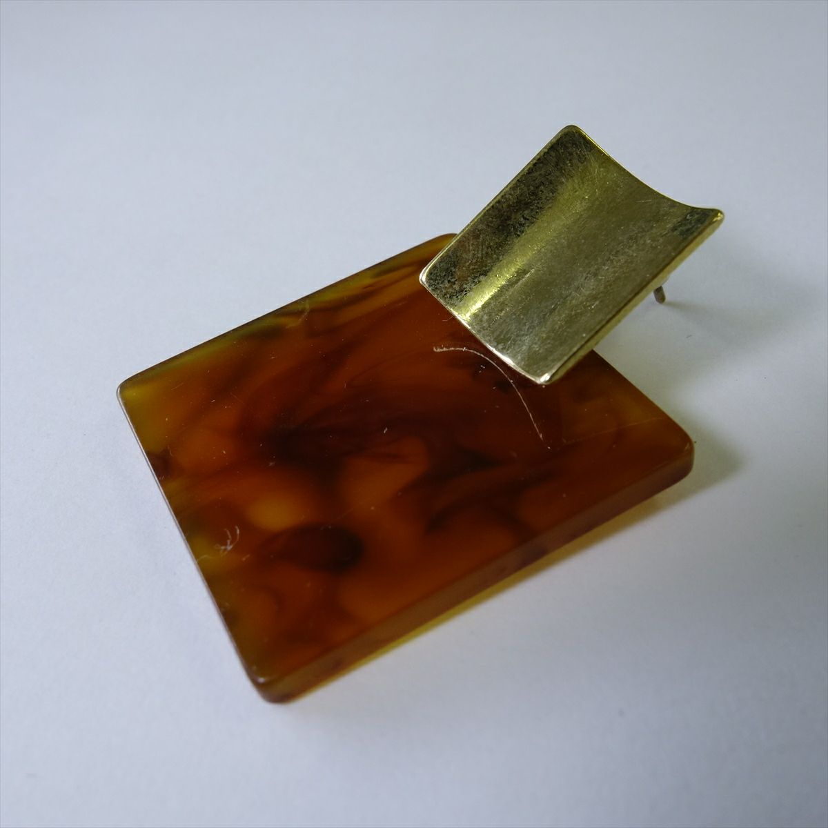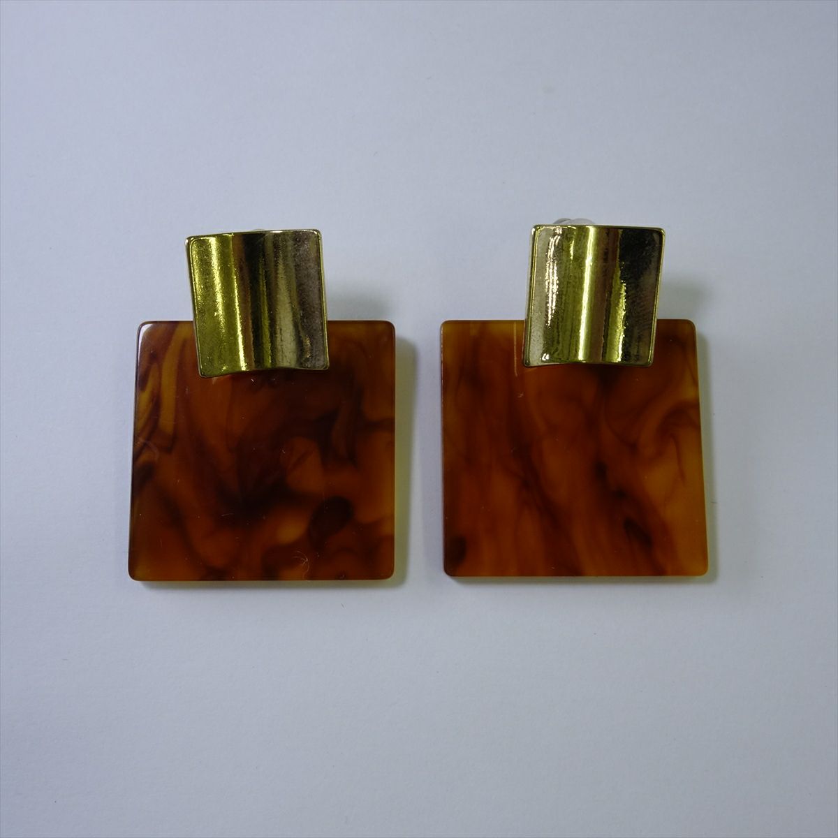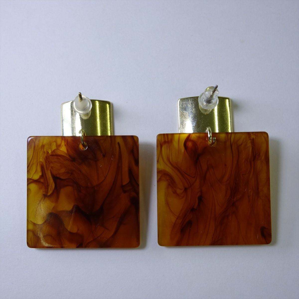 レジン ゴールド べっ甲 スクエア キャッチピアス