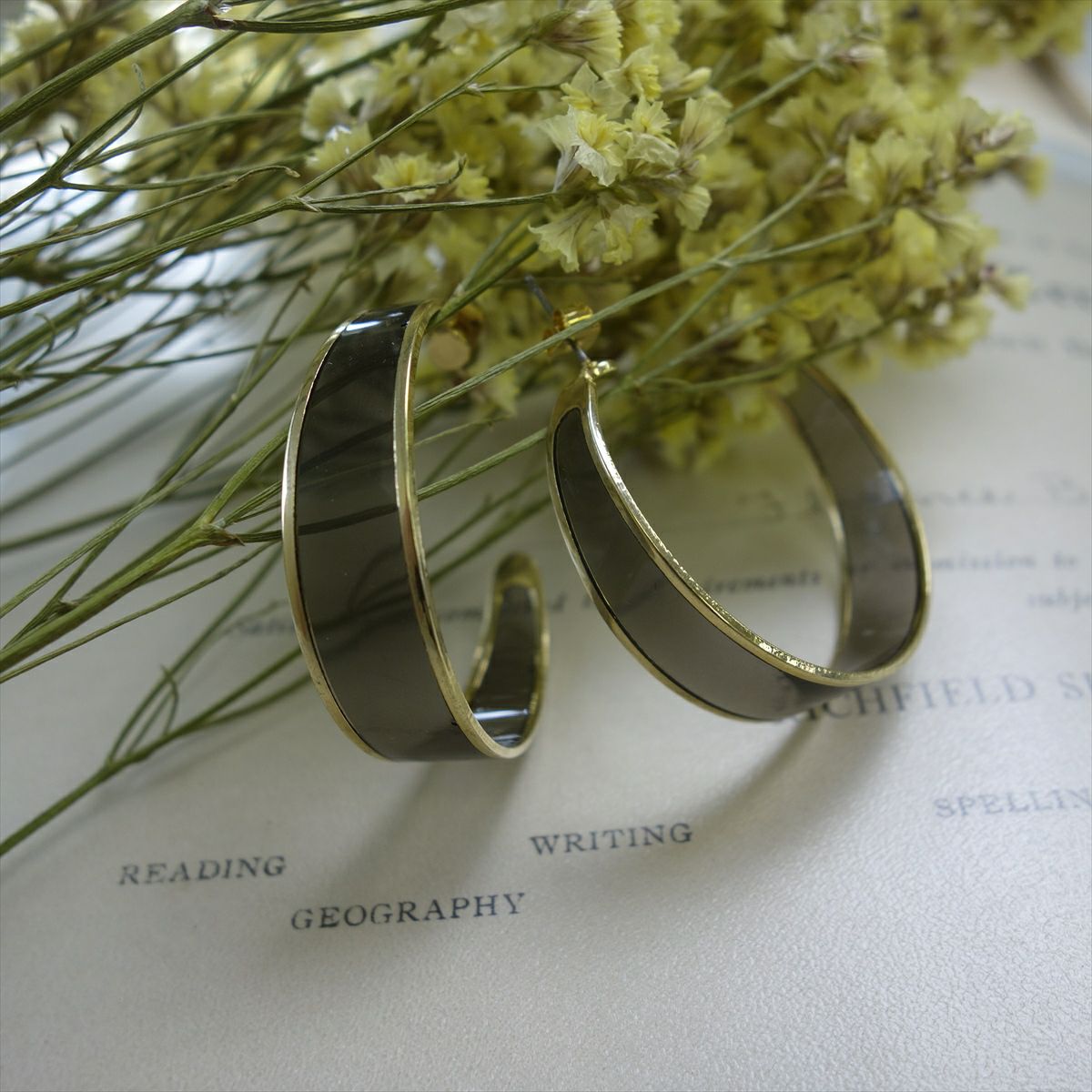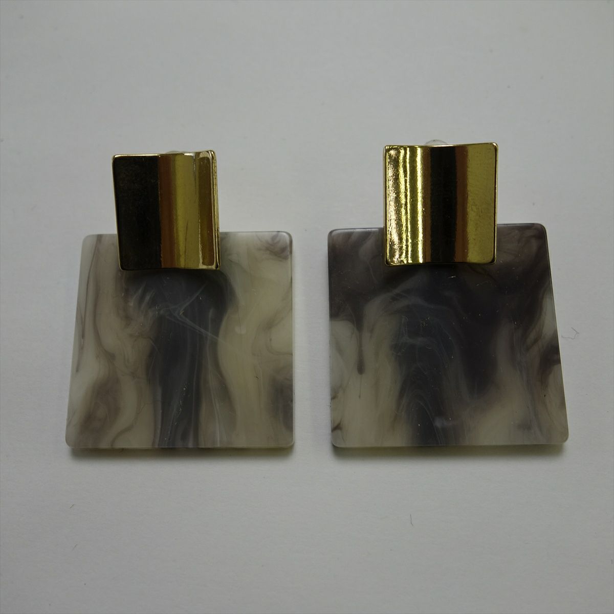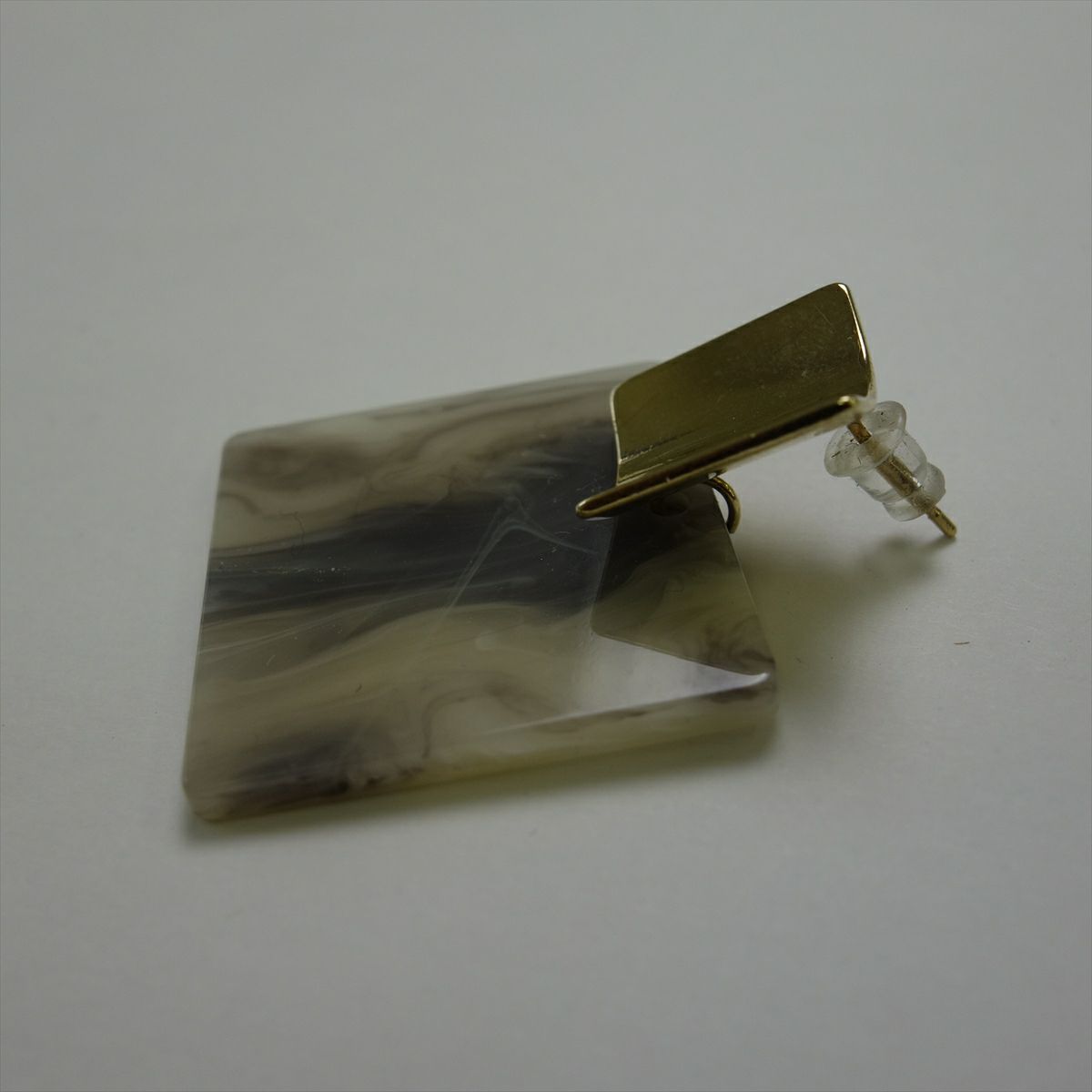 レジン スクエア キャッチピアス ゴールド グレー