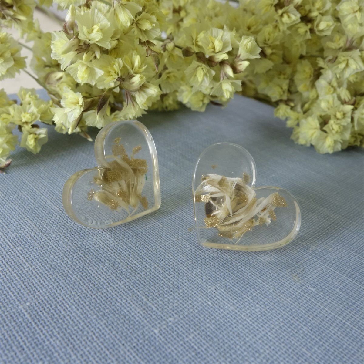 レジン クリア ドライフラワー ハート キャッチピアス