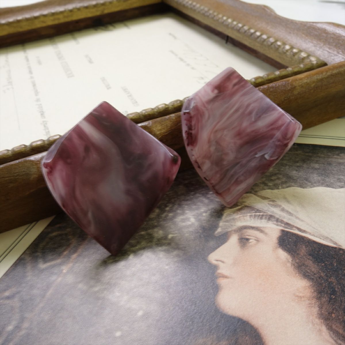 USED シェル スクエア ボルドー フックピアス