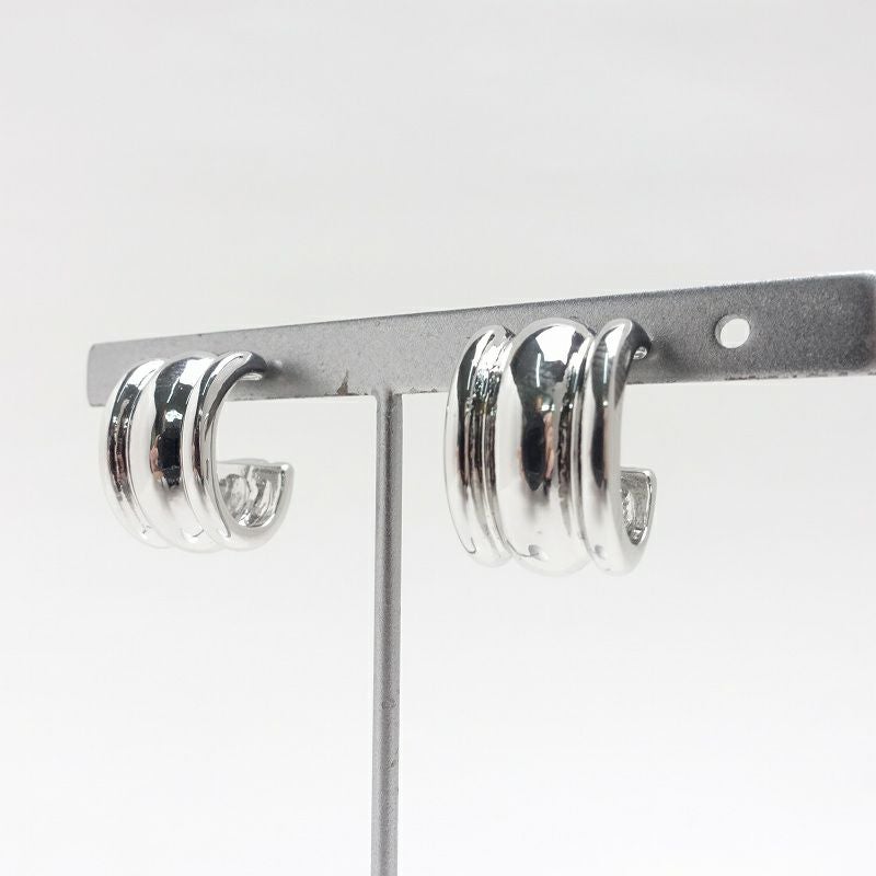 三連風 シンプル シルバー ピアス