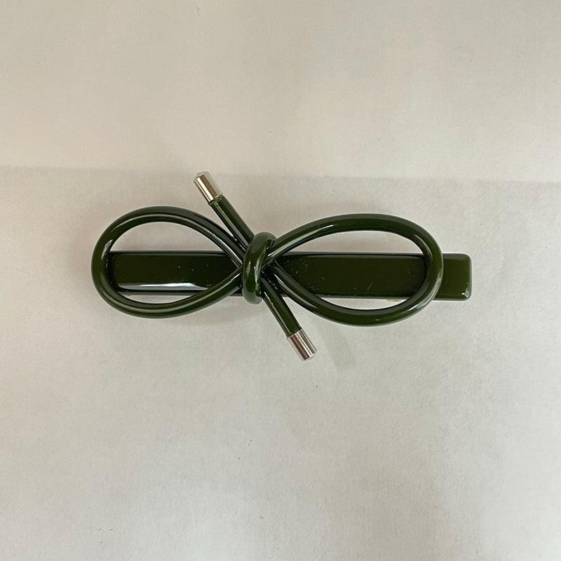 リボン デザイン ヘアクリップ グリーン