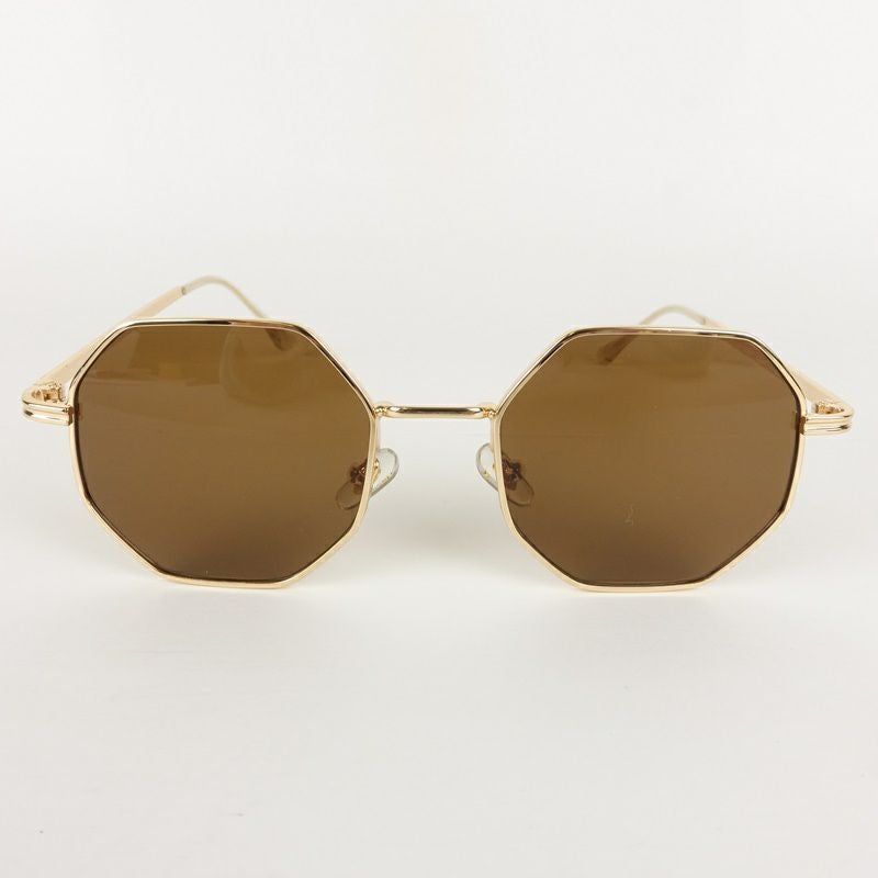 ウェリントン型 メタル ゴールド&ブラウン サングラス
