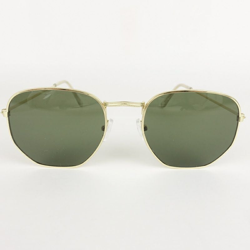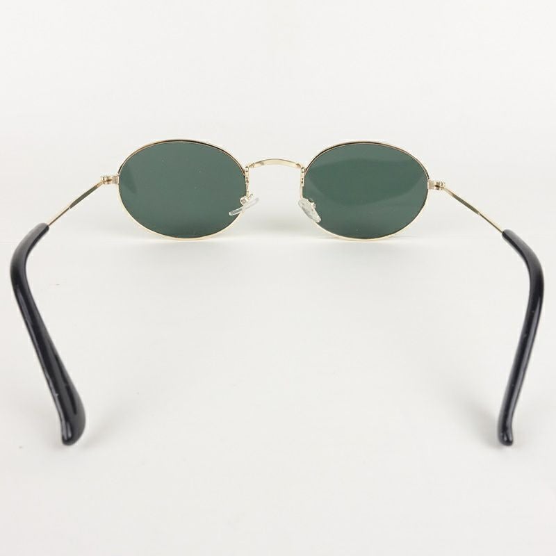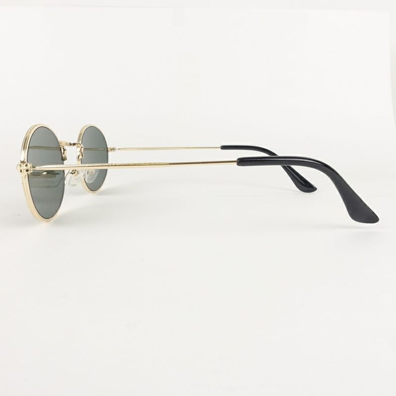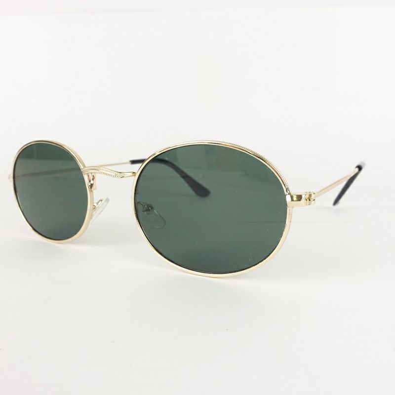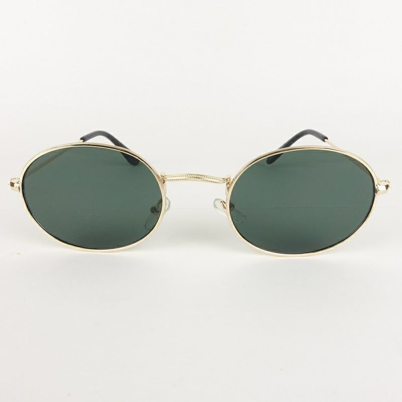オーバル型 メタル ゴールド&カーキ サングラス