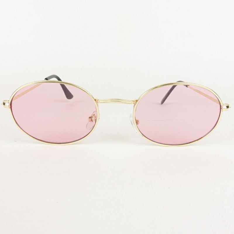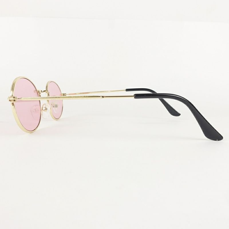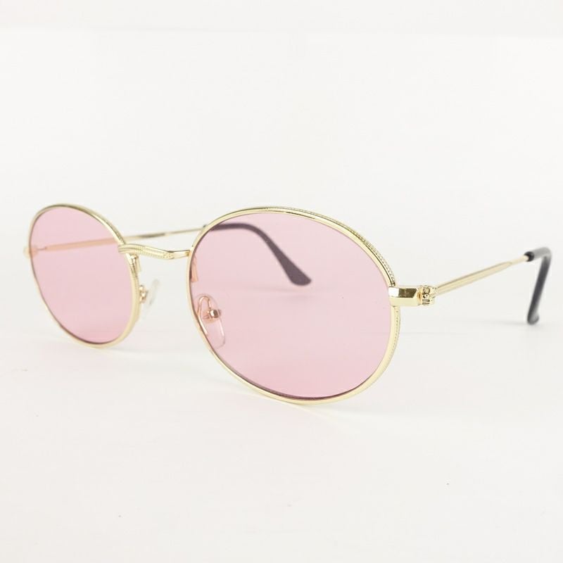 オーバル型 メタル ゴールド&ピンク サングラス