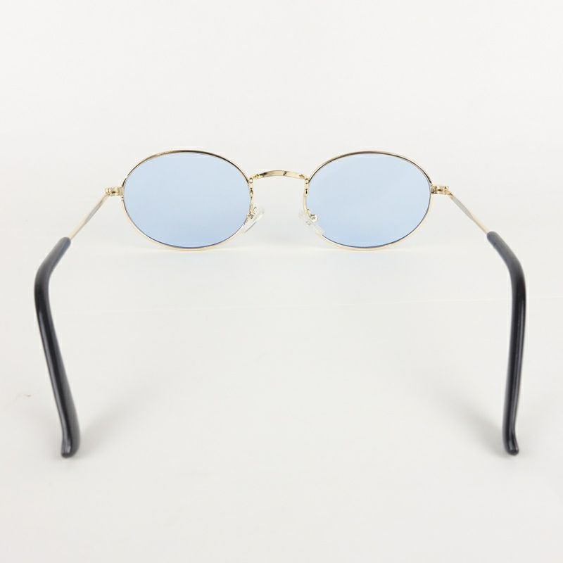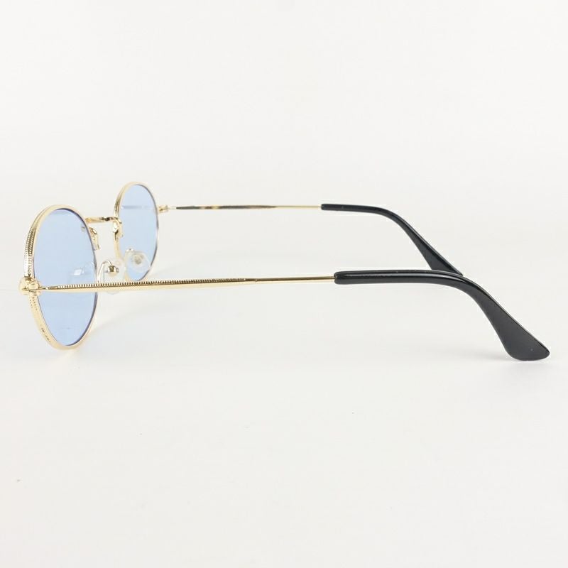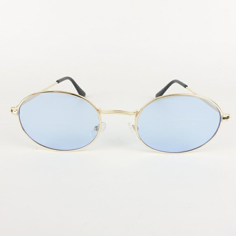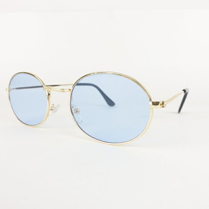 オーバル型 メタル ゴールド&ブルー サングラス