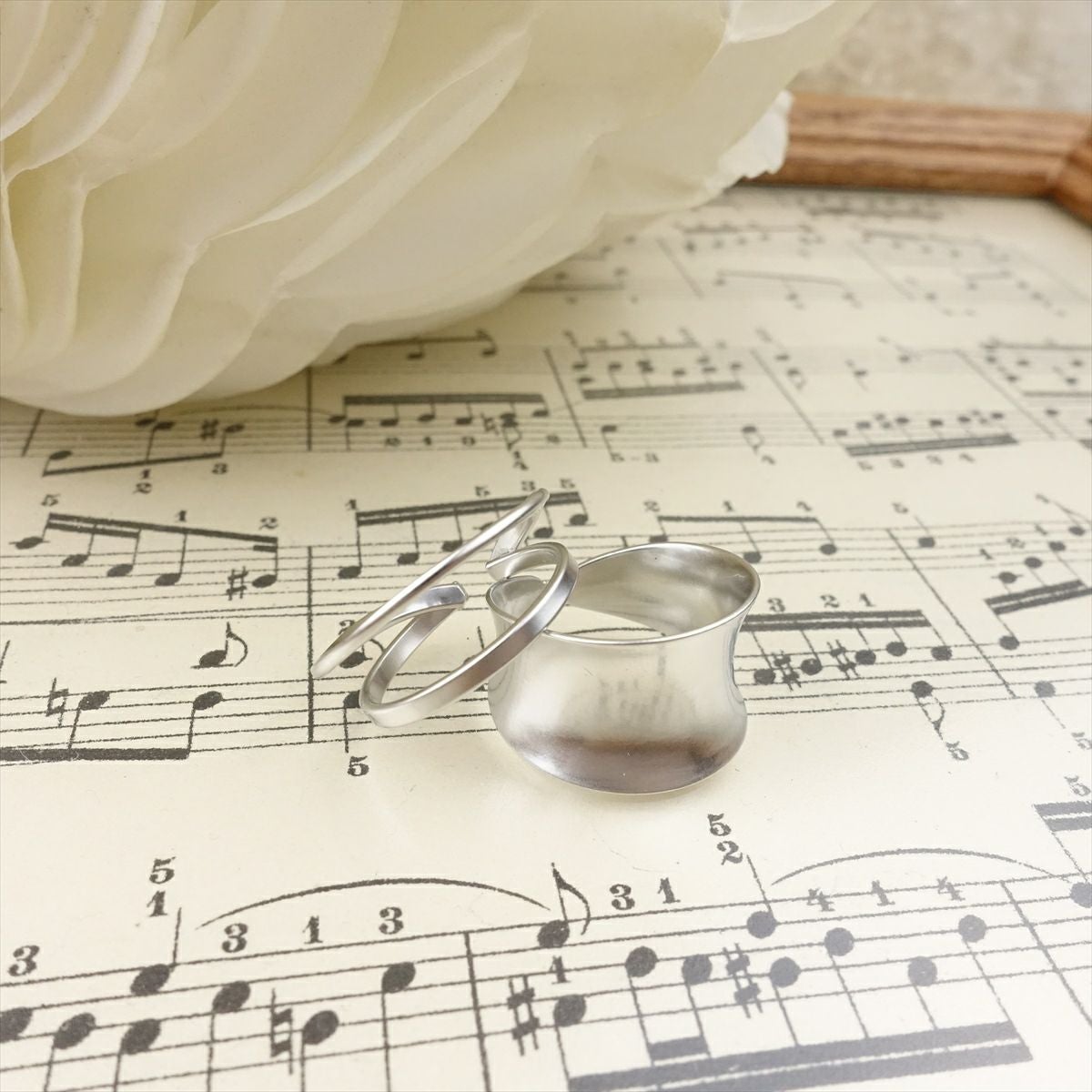 ウェーブデザイン ダブルセットリング マットシルバー