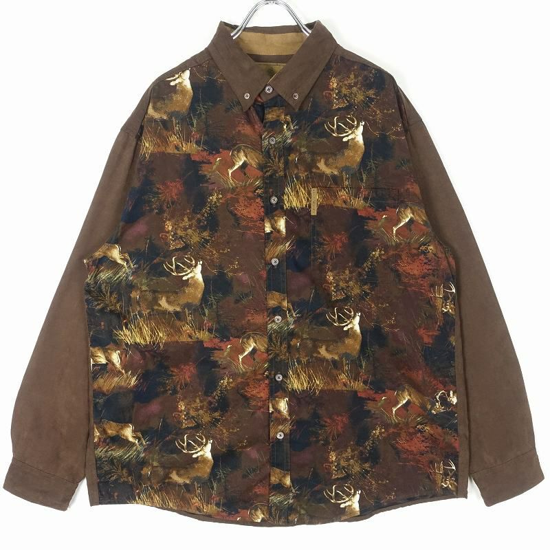 古着 Whitetails アニマル柄 フェイクスエードシャツ