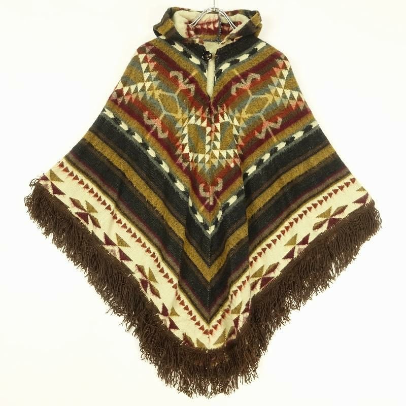 古着 フード付き フリンジ ポンチョ