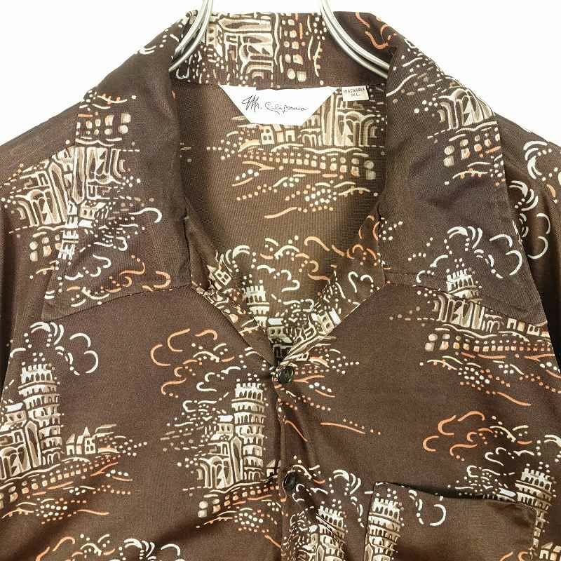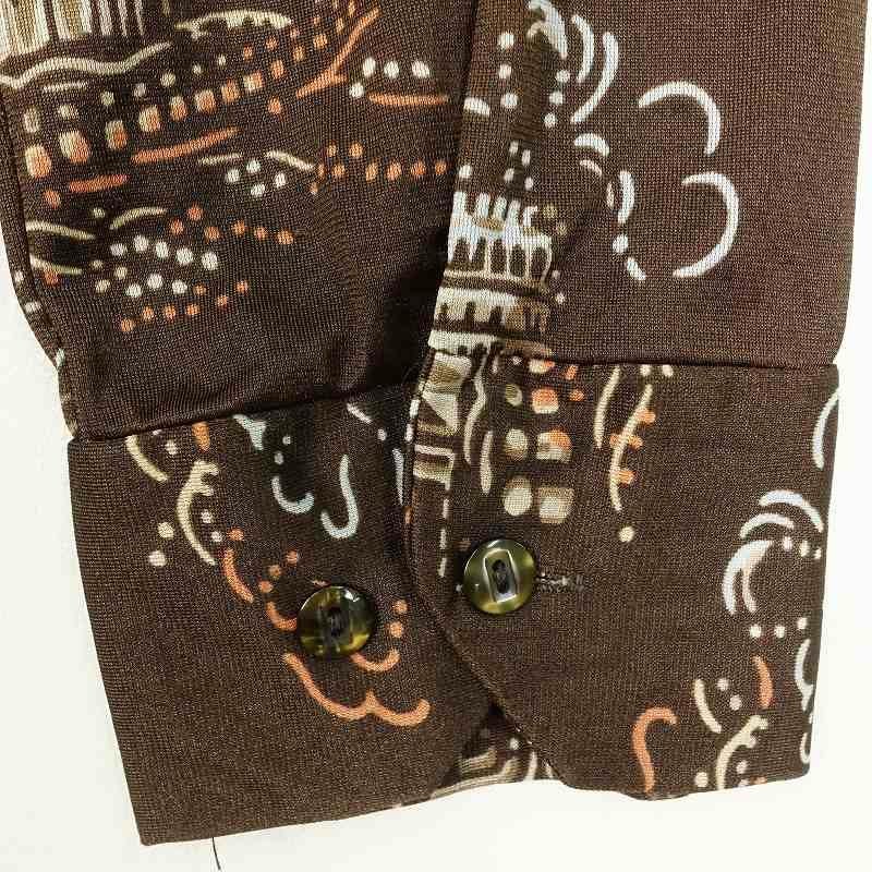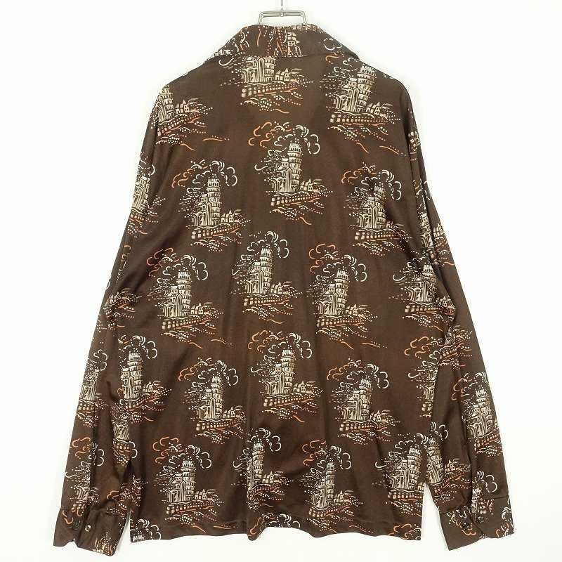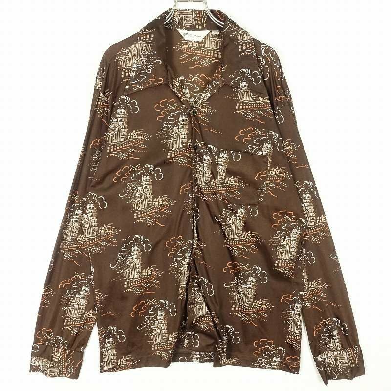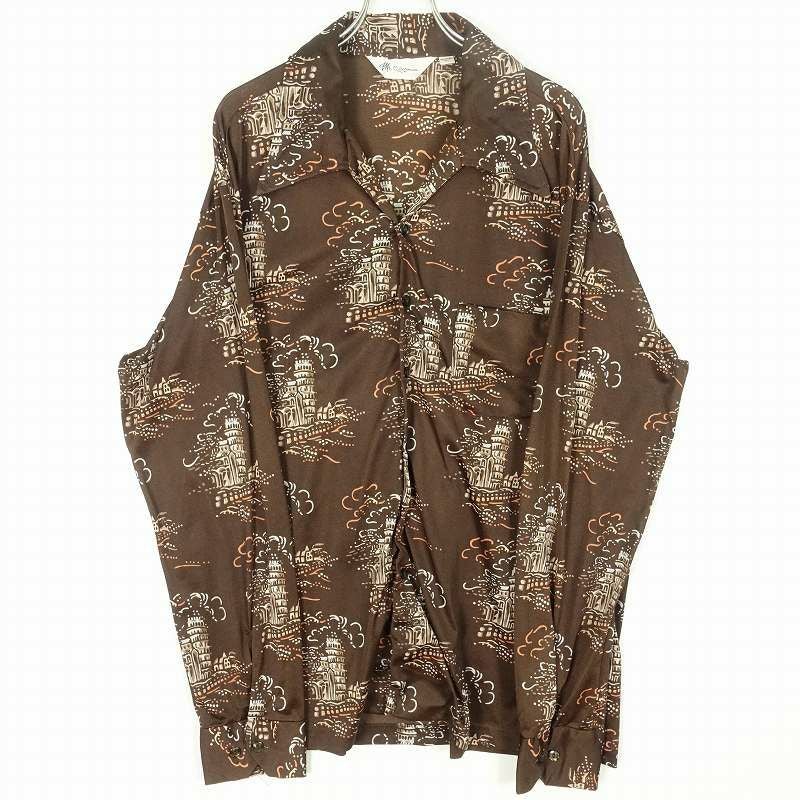 古着 70s オープンカラー 総柄 長袖シャツ