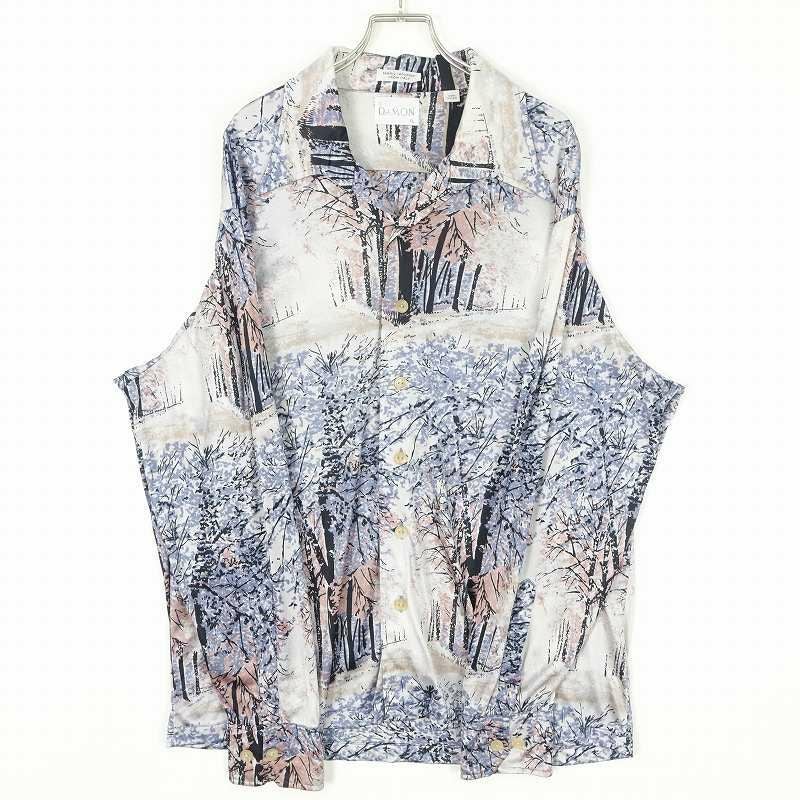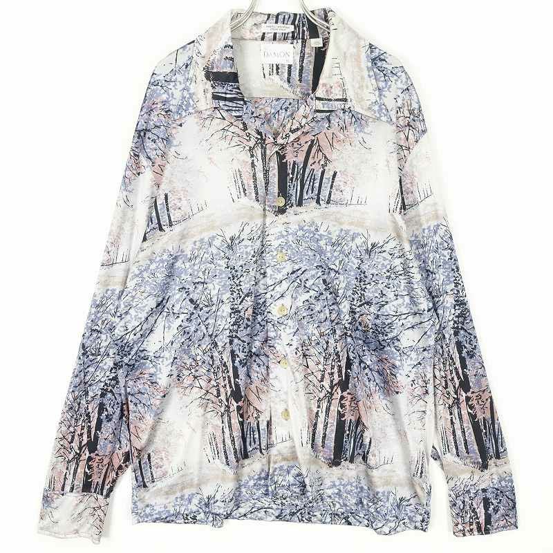 古着 70s ナイロン総柄 長袖シャツ
