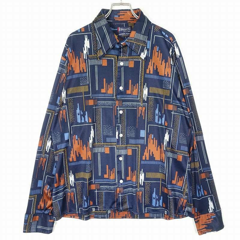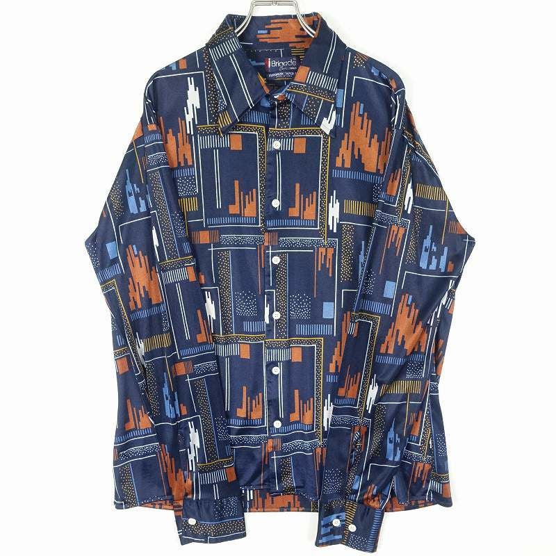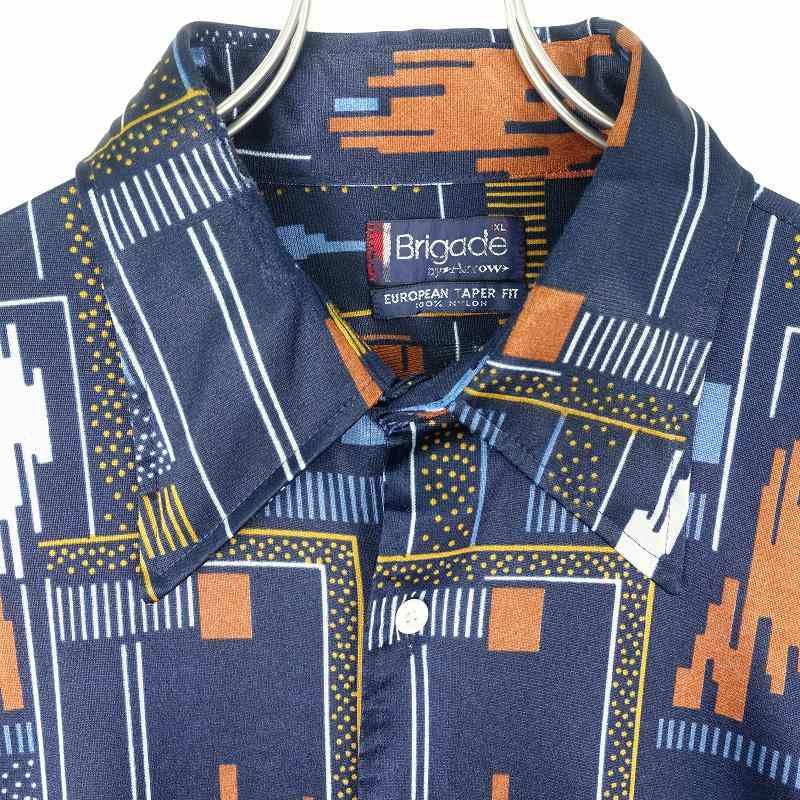 古着 70s Brigade ナイロン 総柄 長袖シャツ