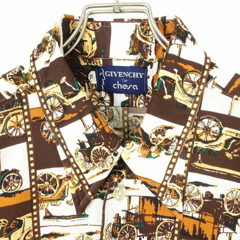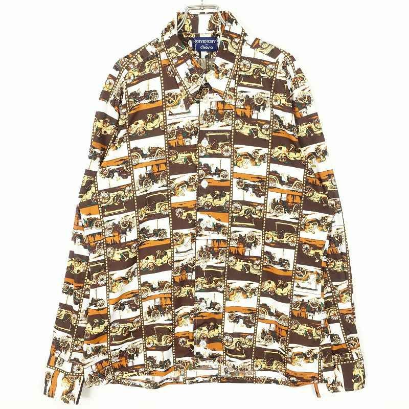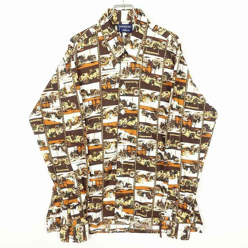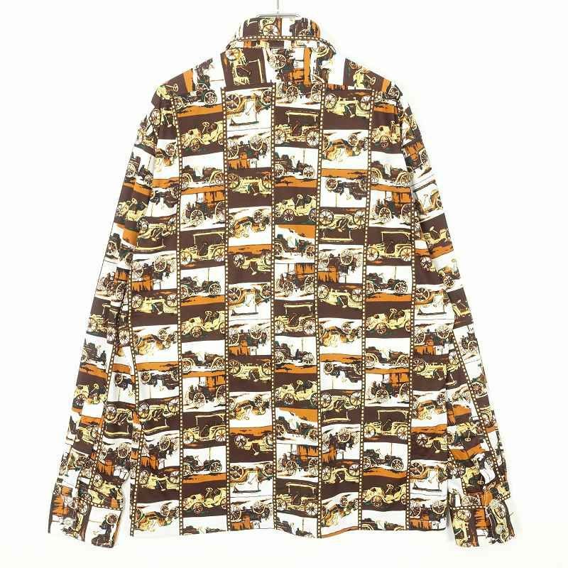 古着 70s 総柄 車 長袖シャツ