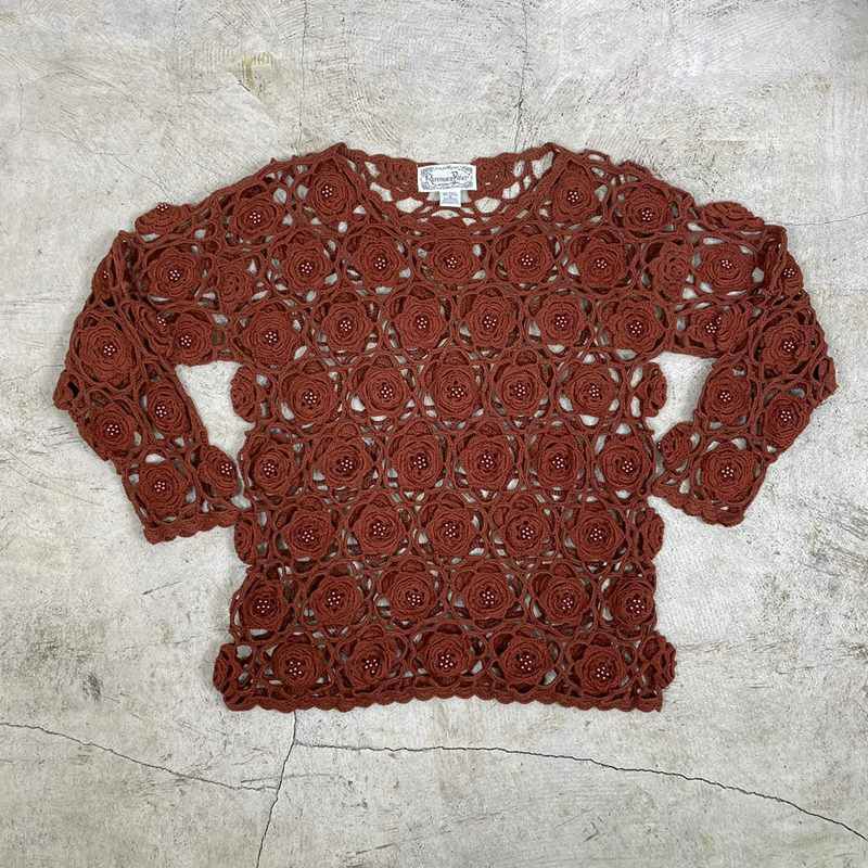 古着 REFERENCE Pointシルクコットン花モチーフ 鍵あみ セーター