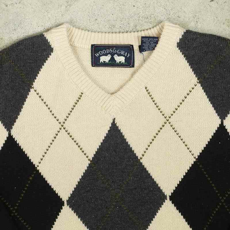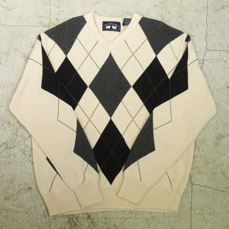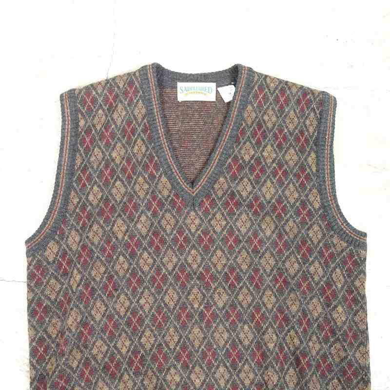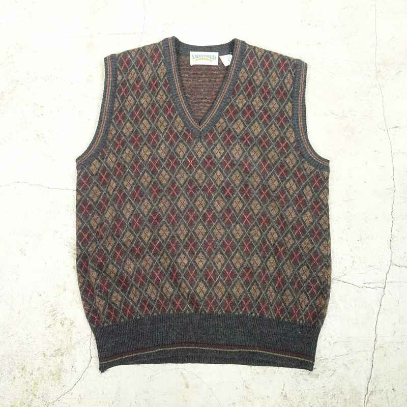 古着 Vネック アーガイル柄セーター