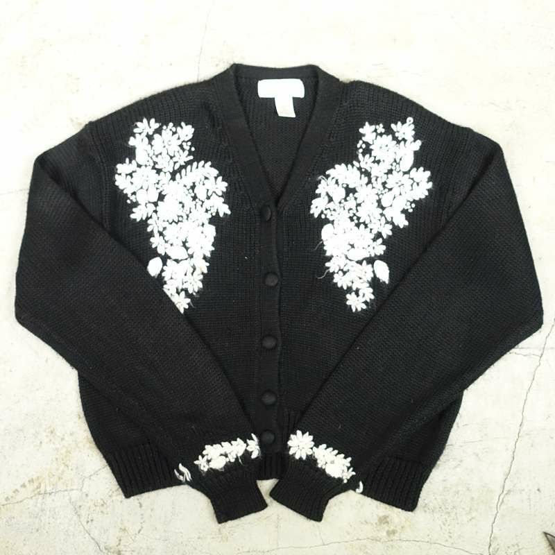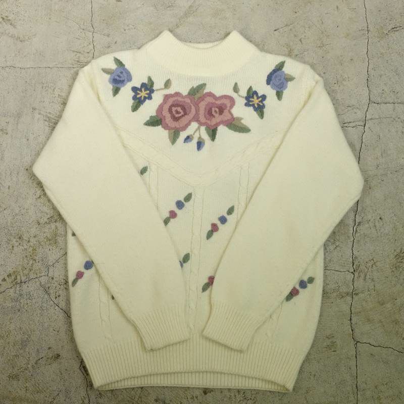 古着 ALFRED DUNNER 花柄刺繍セーターALFRED DUNNER 花柄刺繍セーター