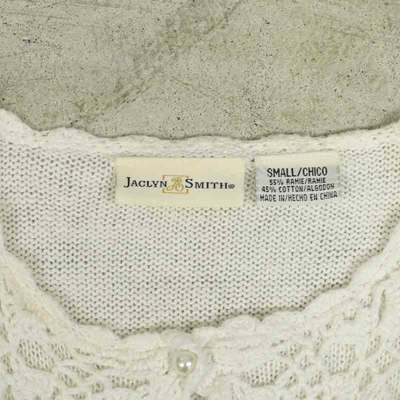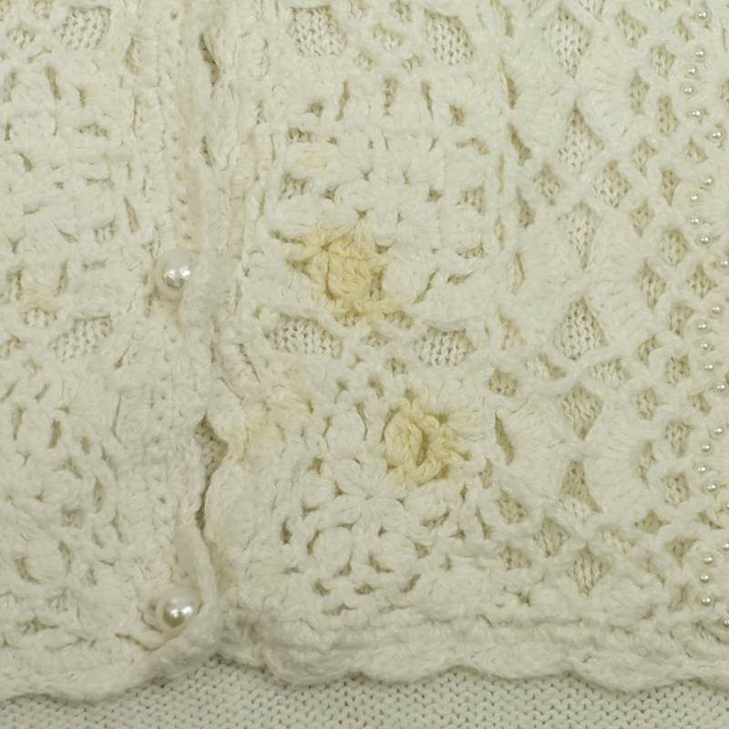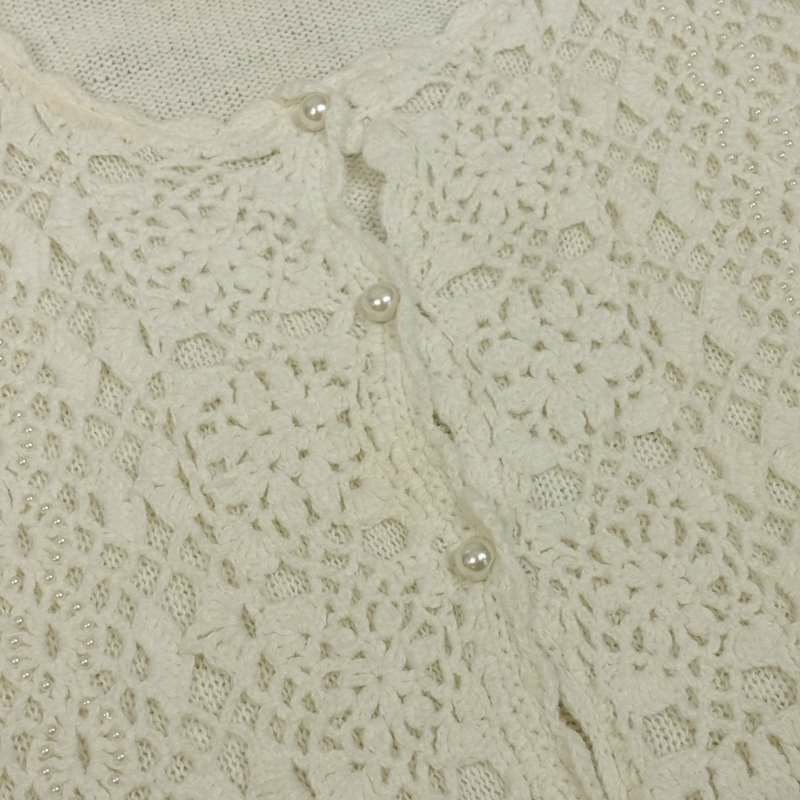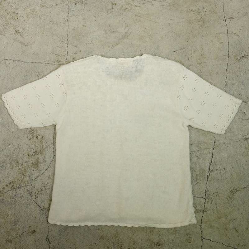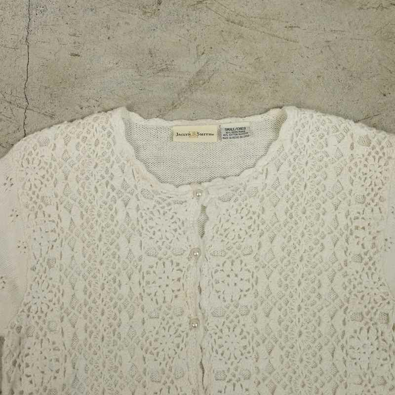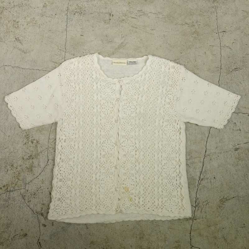 古着 鍵編みデザイン 半袖ニットカーディガン