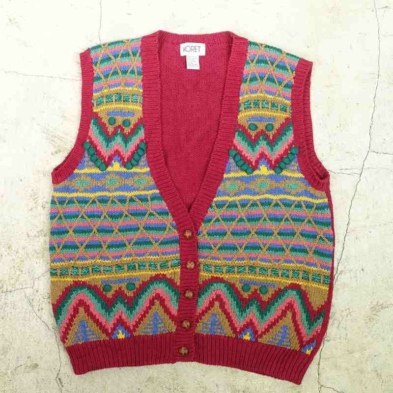 古着 Vネック柄物ニットベスト