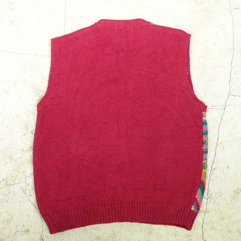 古着 Vネックニットベスト エンジ