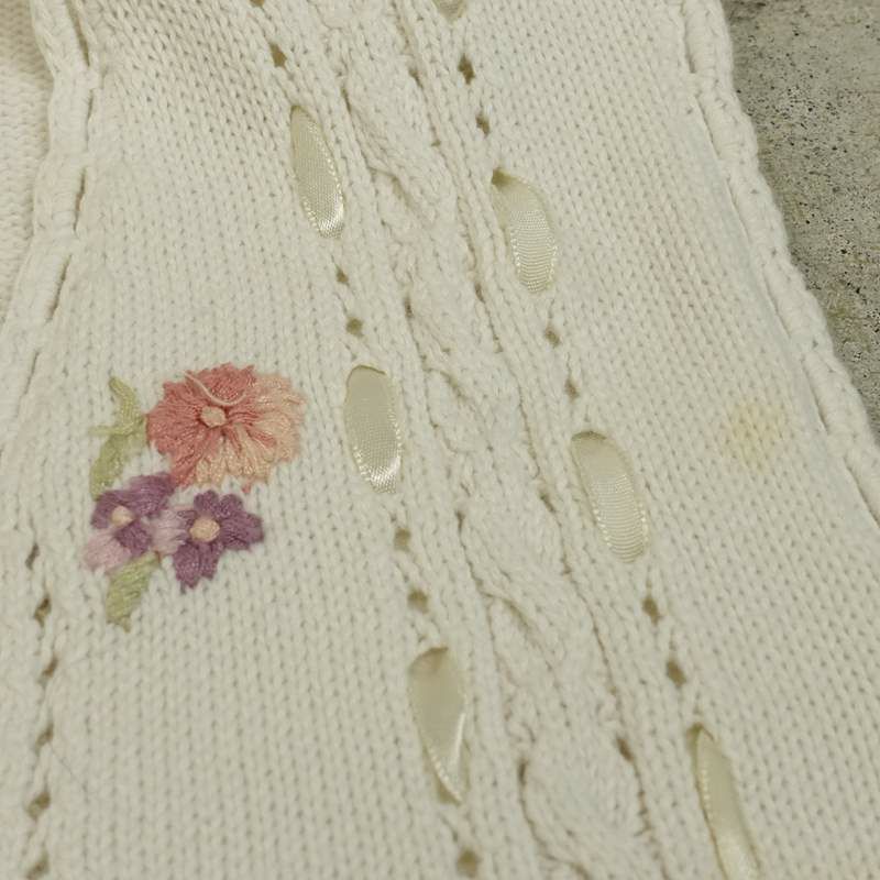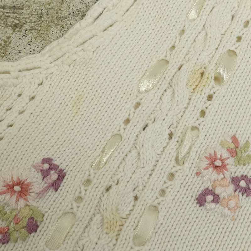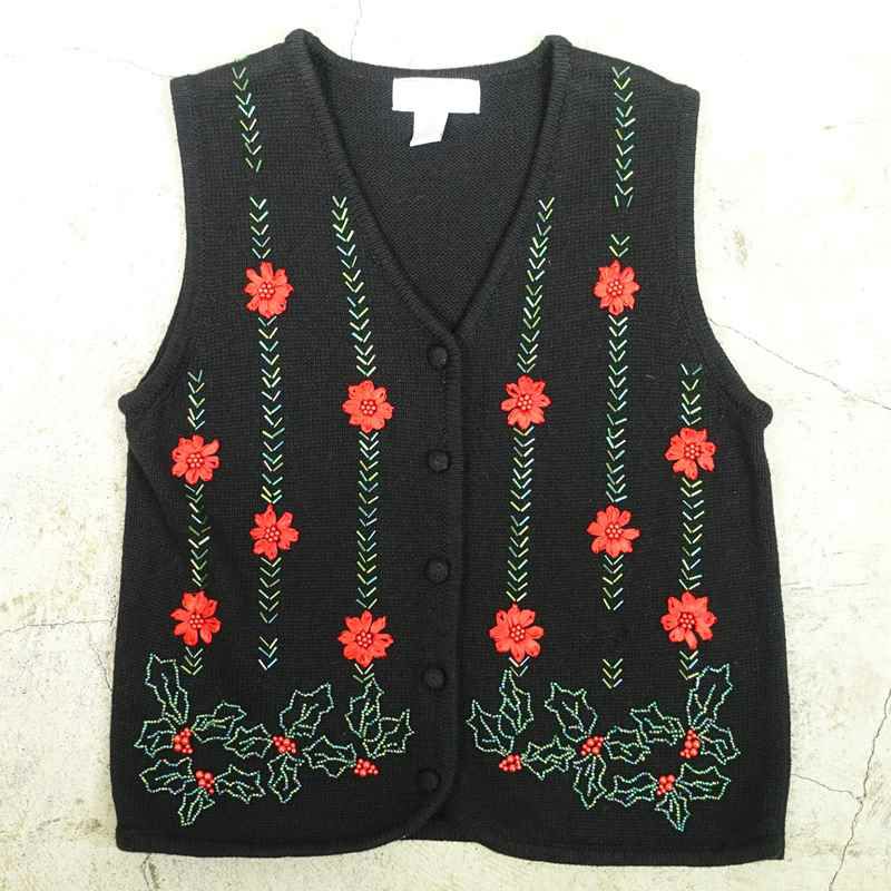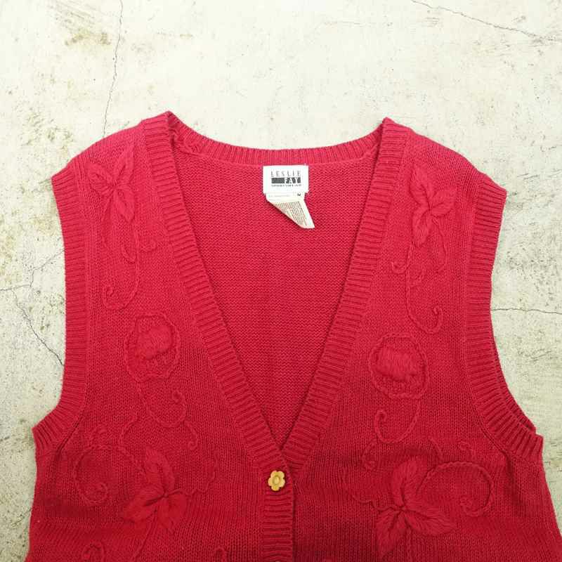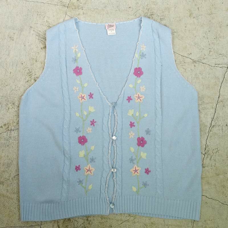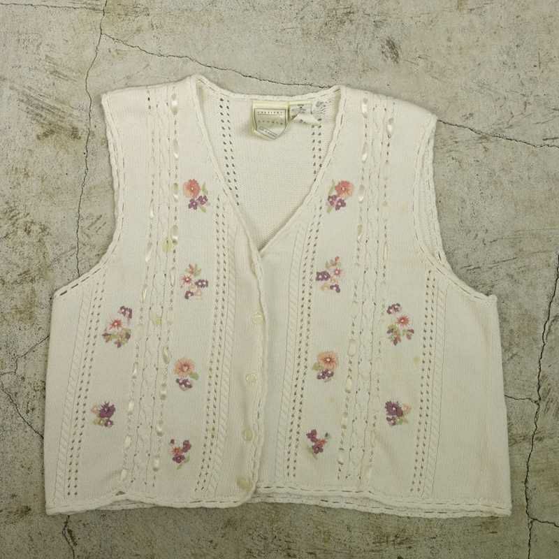 古着 花柄刺繍 Vネックニットベスト