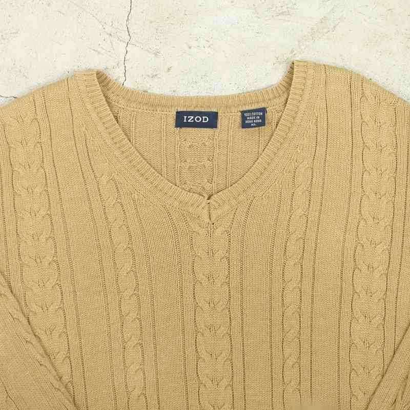 古着IZOD Vネックセーター キャメル色