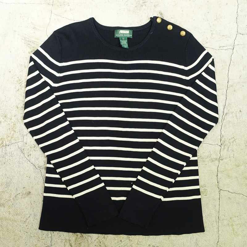 古着 LAUREN ボーダー柄クルーネックセーター