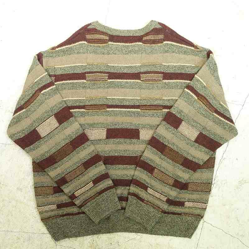 古着 クルーネックボーダー柄ニット