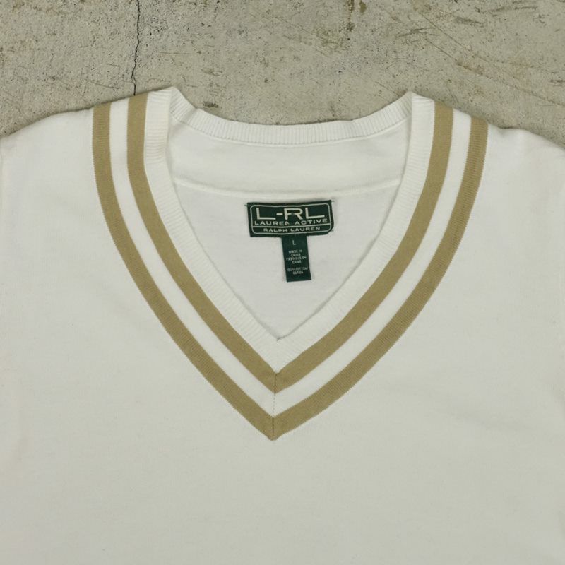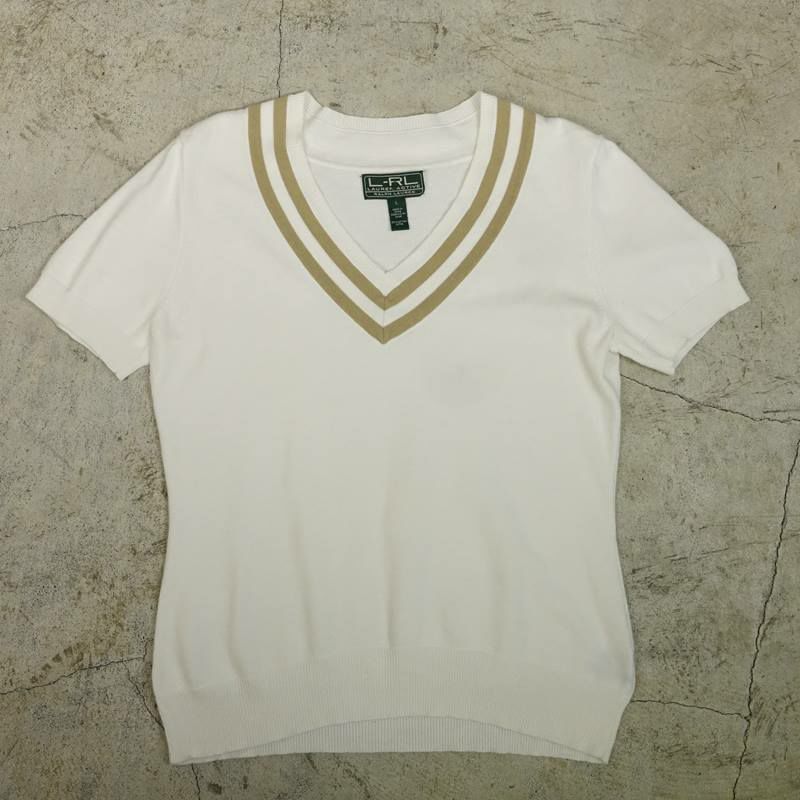古着 L-RL LAUREN ACTIVE 半袖チルデンニットセーター
