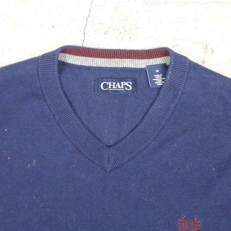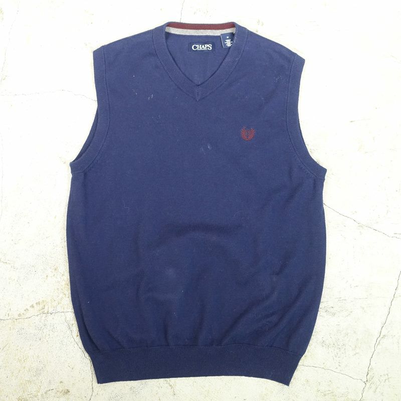 古着 CHAPS Vネックニットベスト ネイビー