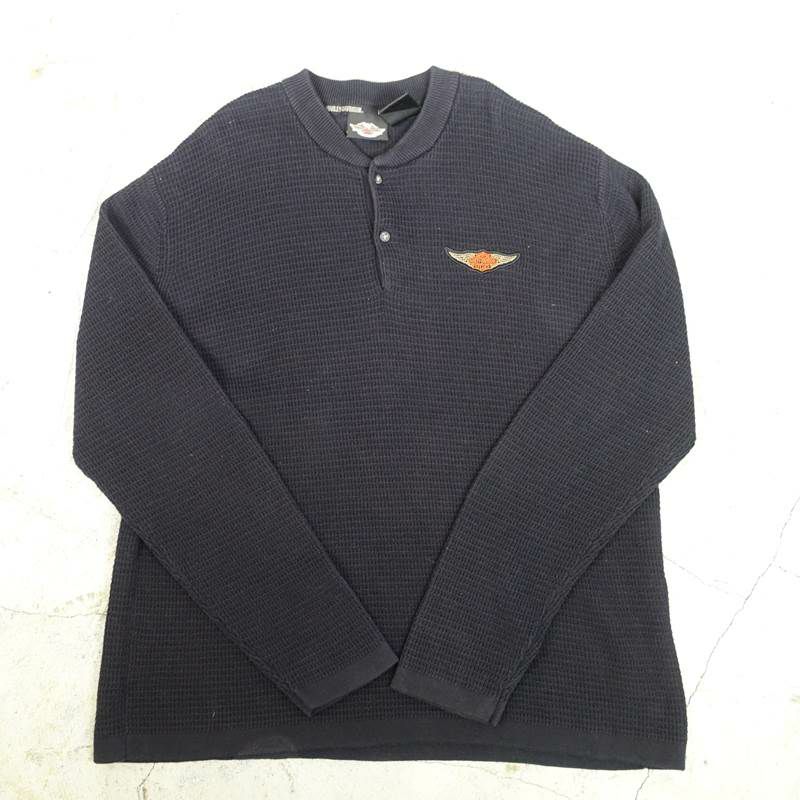 古着 ハーレーダビッドソン ハーフボタン留めニット ブラック