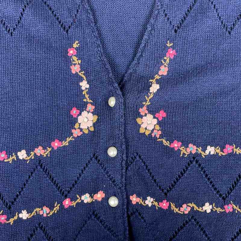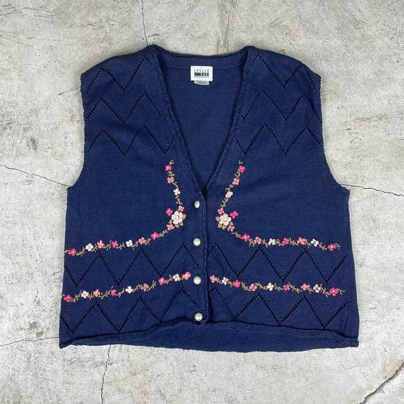 古着 花柄刺繍コットンニットベスト