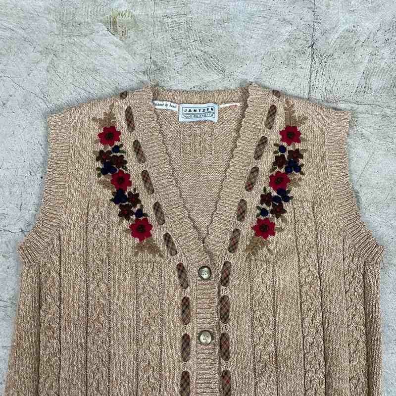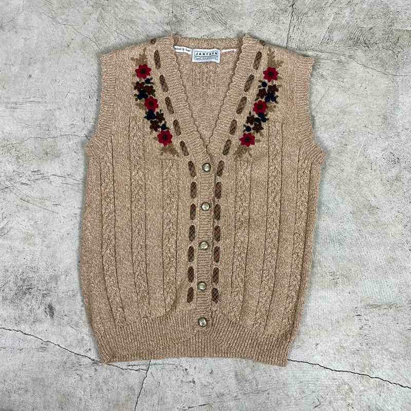 古着 JANTZEN 手刺繍コットンニットベスト