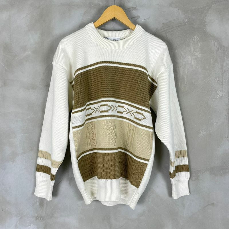 古着 編み込みデザイン クルーネックニット