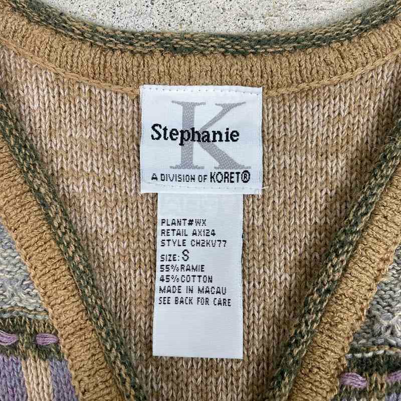 古着 アクリル Vネック デザインニットベスト