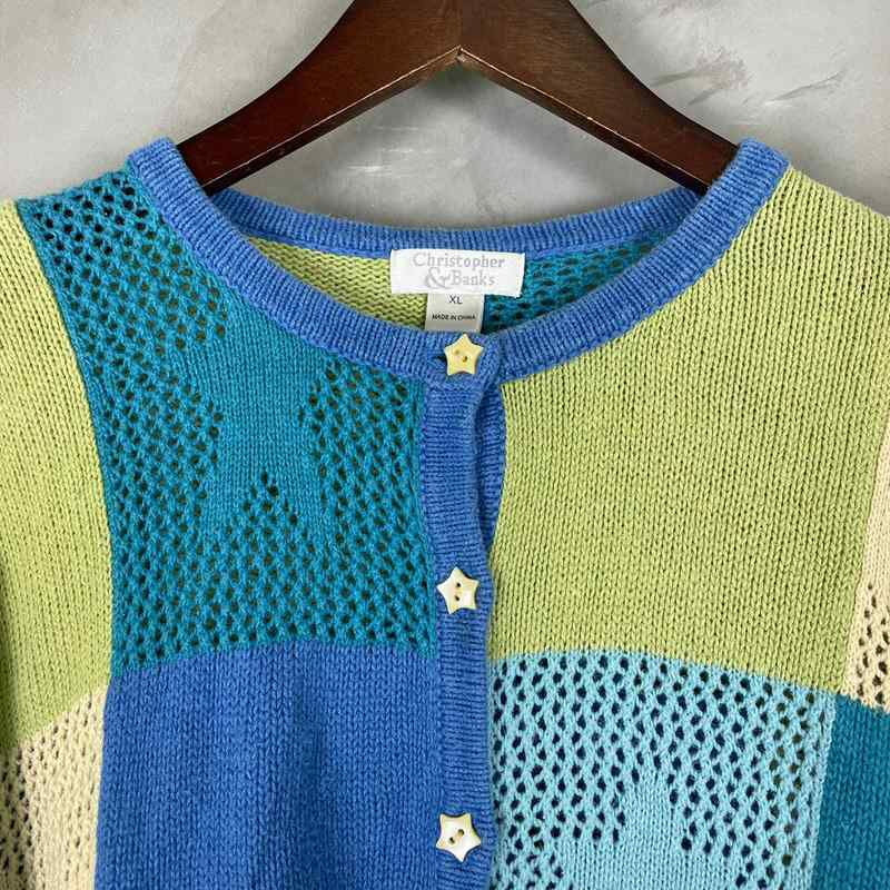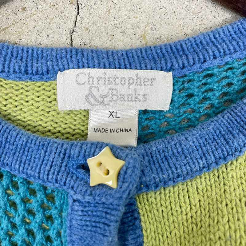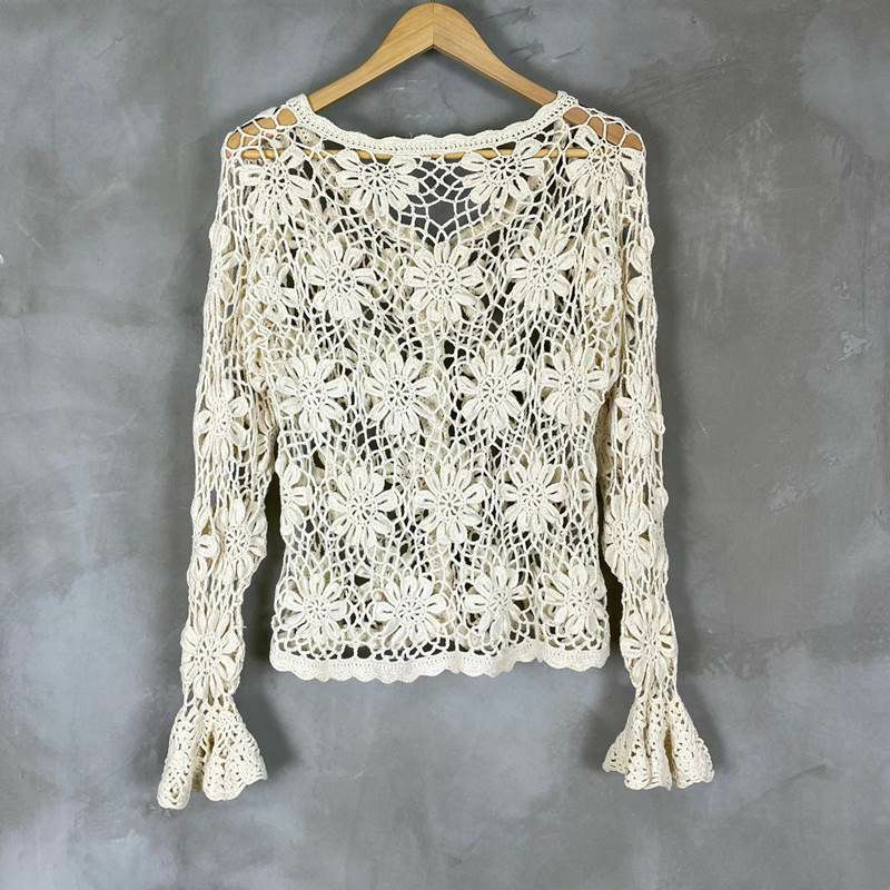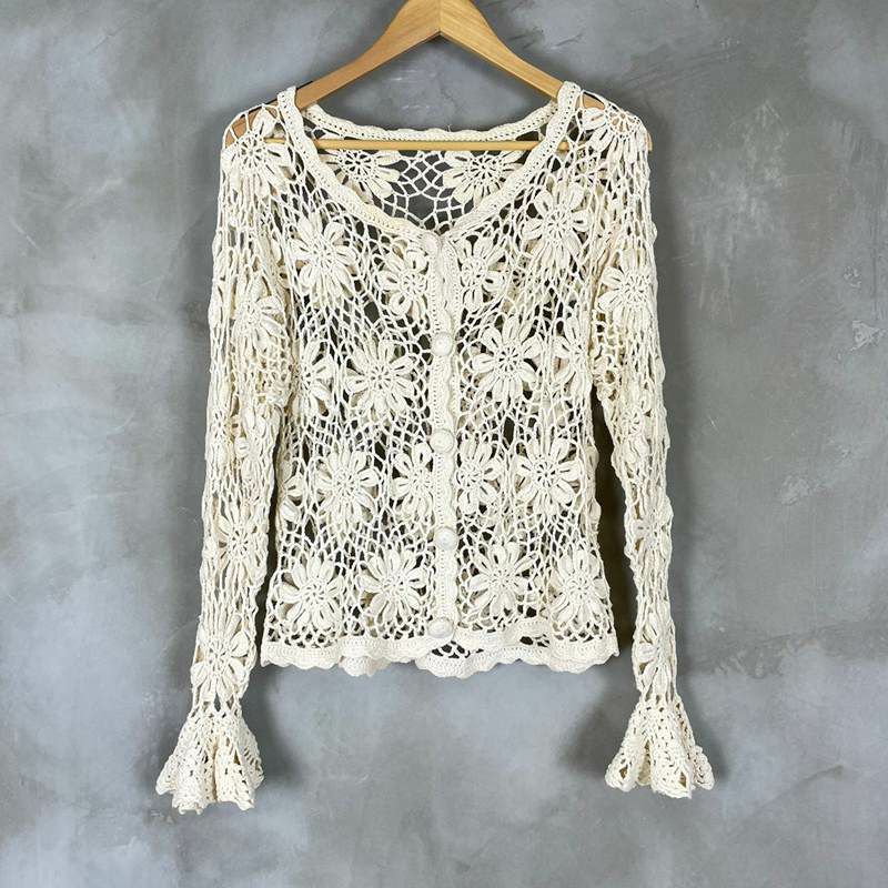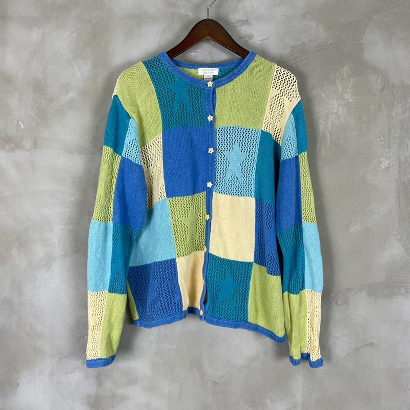 古着 鍵編みコットンニットカーディガン