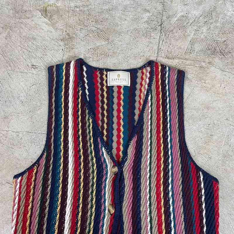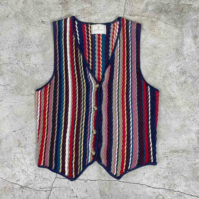 古着 ストライプデザインコットンニットベスト