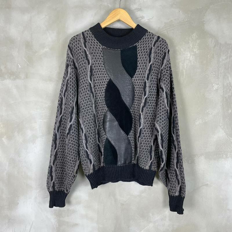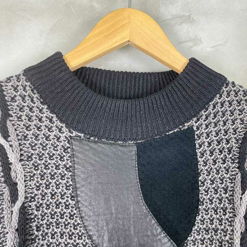 古着 ポイントレザーコットンクルーネックニット
