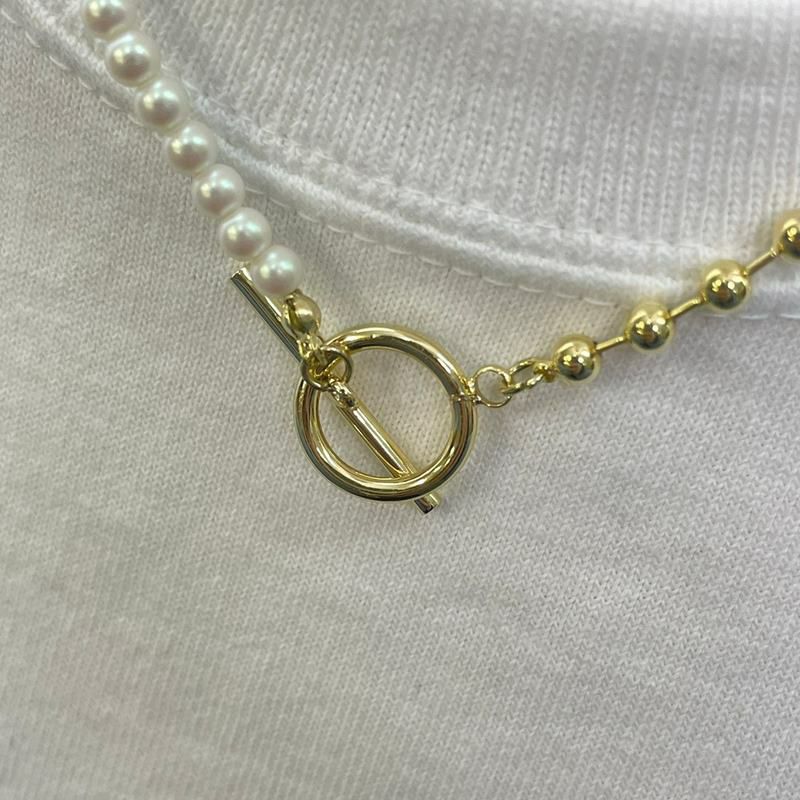 パール×チェーン デザイン ネックレス ゴールド