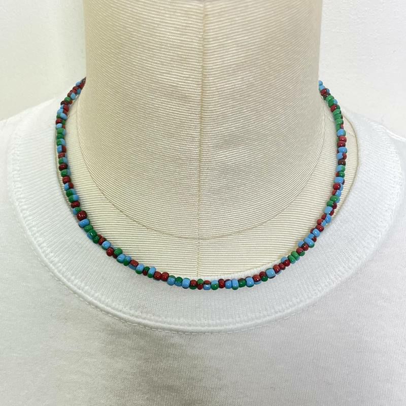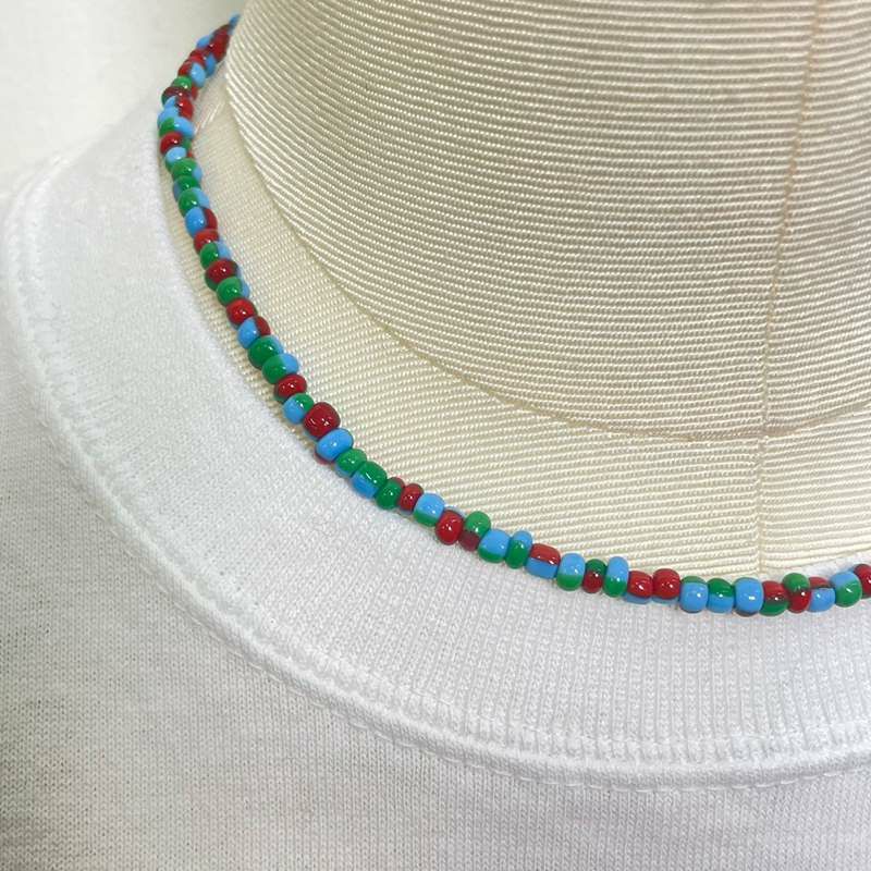 ビーズ ネックレス グリーン×ブルー×レッド