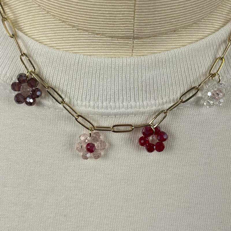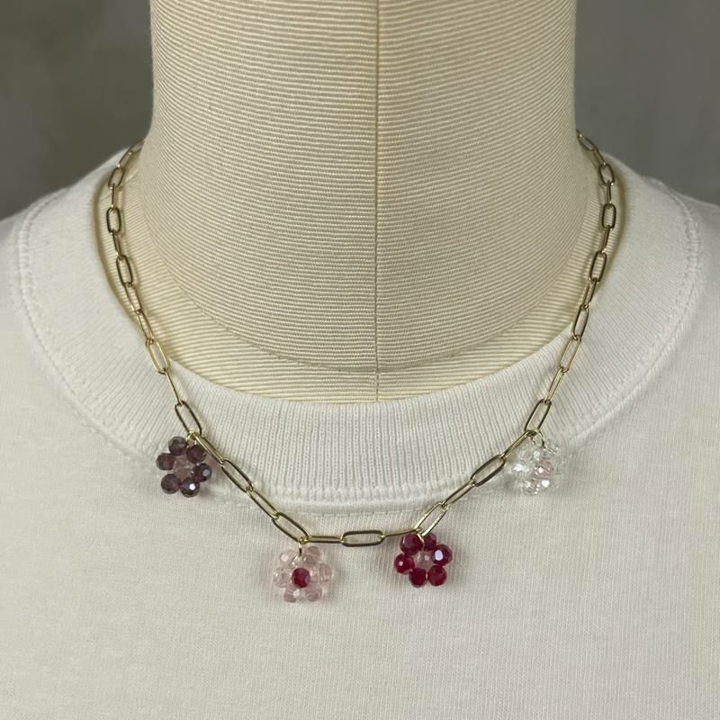 フラワー ビーズ デザイン ネックレス ゴールド
